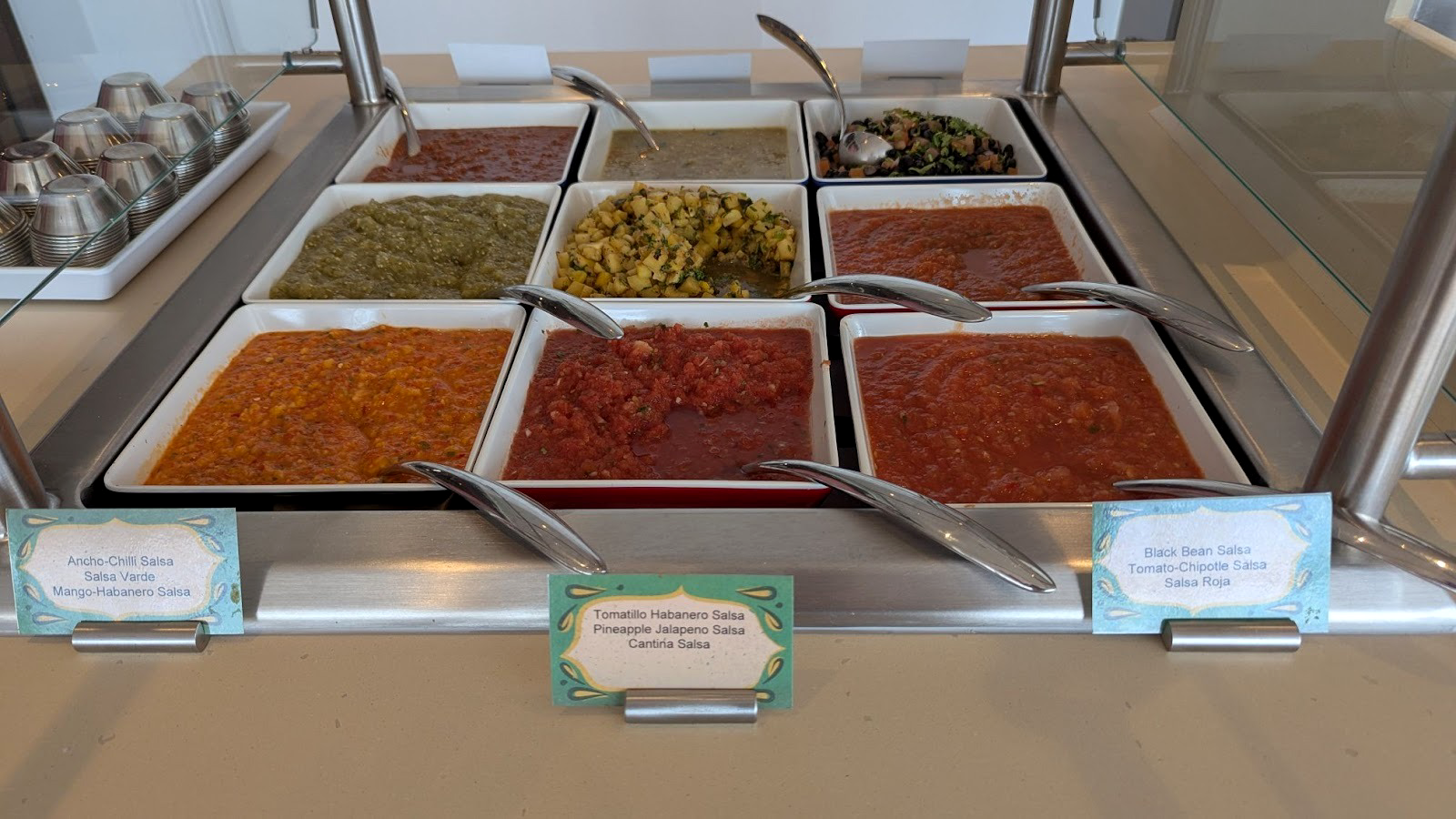 Nearby is another stand-out since its debut that has become so popular, it has been replicated on Dream Class ships, though under a different name. Donald’s Cantina has become a must-see favorite offering up tacos, burritos, and bowls in a build-your-own fashion with beef, chicken, pork carnitas, rice, beans, and/or fajita veggies and other ingredients. Not to mention the nearby salsa bar to top everything off!