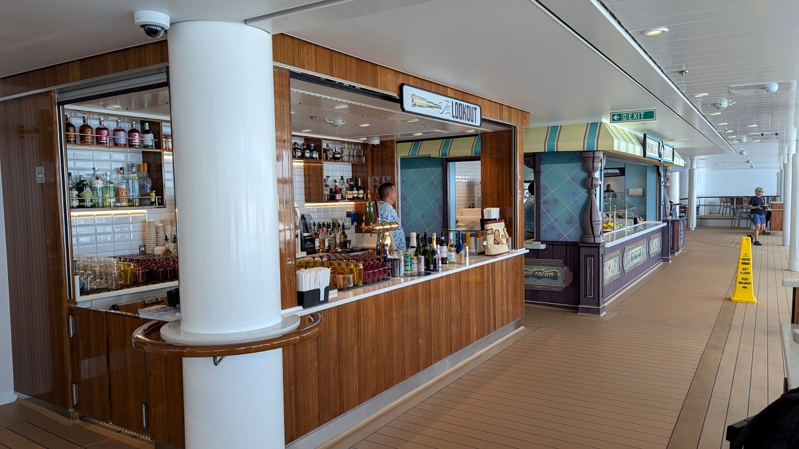 Looking for a more adult beverage? Nearby you’ll find the Lookout bar. Note that if you’d like a soda or soft drink from this location, you will incur an extra cost. Our advice: take a few steps and head to the included drink station.