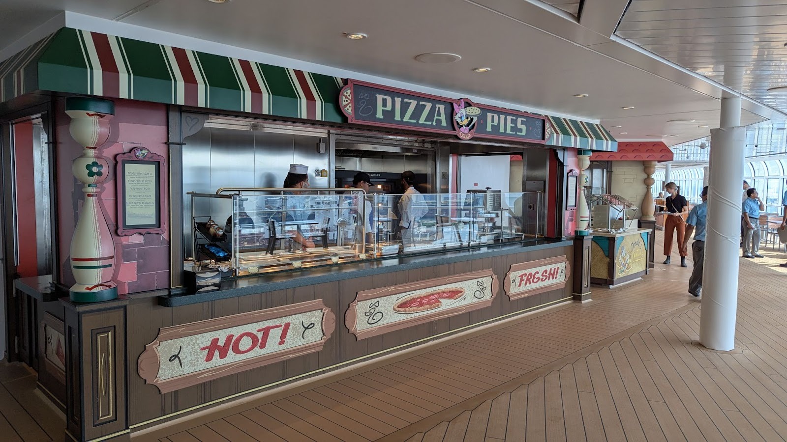 While a grill with burgers and such is featured on the other Disney Ships under various names, the Disney Destiny (and her sisters) also feature Mickey’s Smokestack Barbecue in this area, which has fast become a favorite of many cruisers, complete with sauce bar. St. Louis Ribs, Kielbasa Sausage, Roast Chicken, Macaroni and Cheese, and more all available to pick up - and again, included as part of your cruise fare.