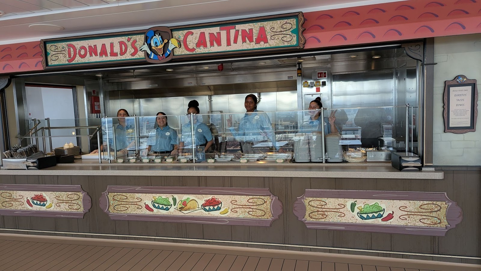 Nearby is another stand-out since its debut that has become so popular, it has been replicated on Dream Class ships, though under a different name. Donald’s Cantina has become a must-see favorite offering up tacos, burritos, and bowls in a build-your-own fashion with beef, chicken, pork carnitas, rice, beans, and/or fajita veggies and other ingredients. Not to mention the nearby salsa bar to top everything off!