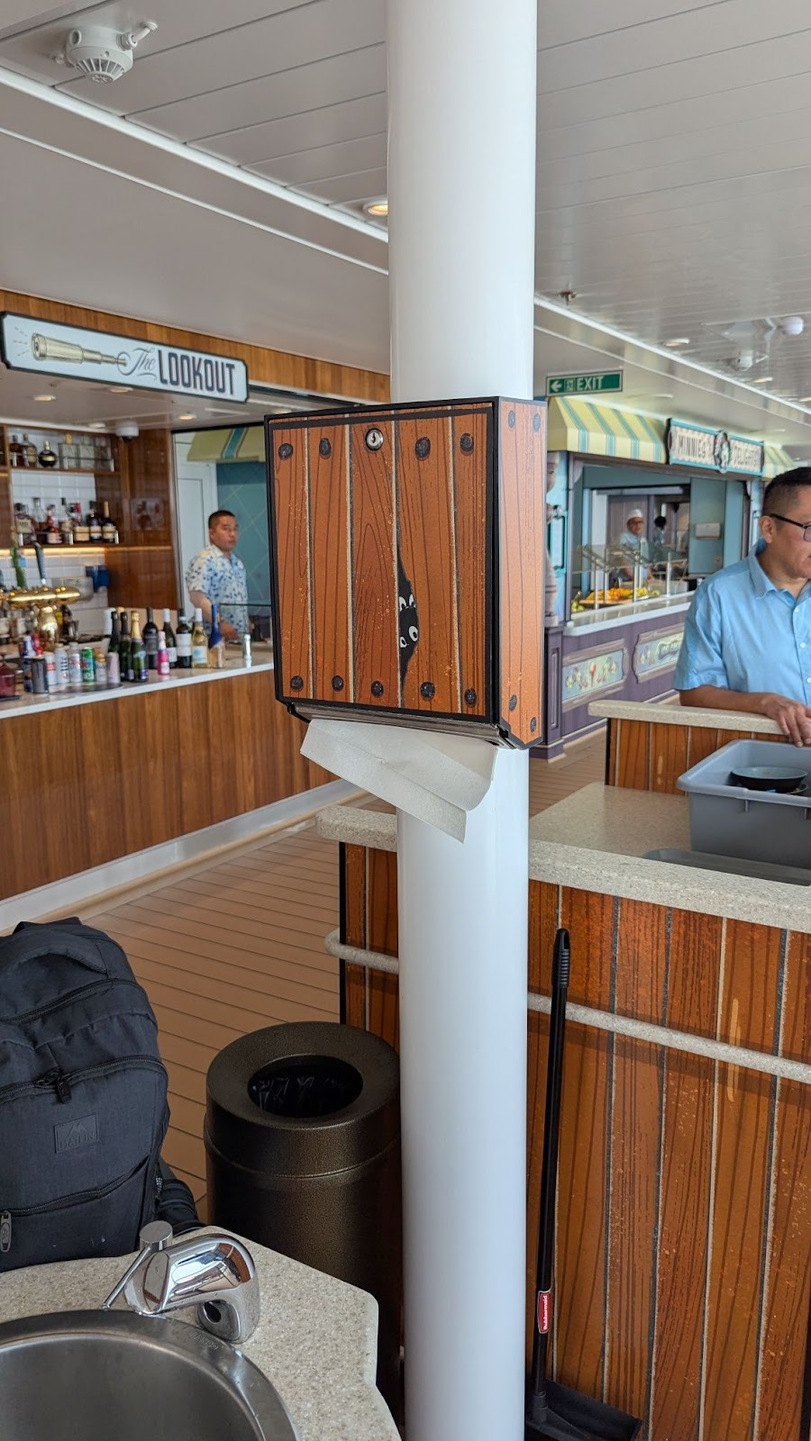 Looking for a more adult beverage? Nearby you’ll find the Lookout bar. Note that if you’d like a soda or soft drink from this location, you will incur an extra cost. Our advice: take a few steps and head to the included drink station.