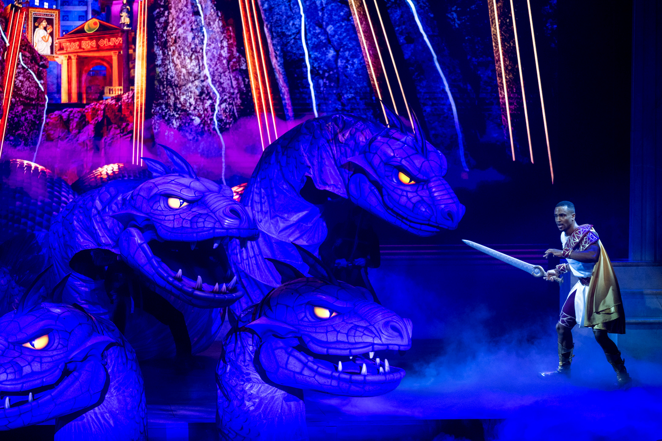 The technical achievements of Disney Hercules are nothing short of staggering. This is one of the most ambitious stage shows Disney has ever attempted — and the fact that it’s performed at sea makes the accomplishment even more impressive. Projection mapping, puppetry, and physical effects merge into a fluid, cinematic tapestry. The Titans are jaw-dropping. The Hydra is a moment that will get audible reactions every night. Even Nessus — a character who could easily feel throwaway — is realized in a way that makes the audience sit up and take notice.