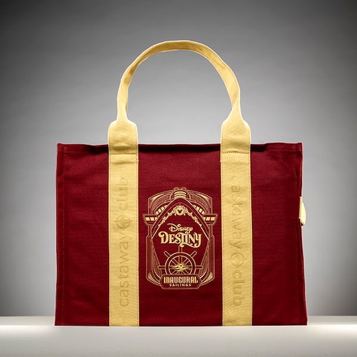 - Silver Castaway Club (those who have sailed on Disney Cruise Line before) members will get a canvas tote, using an epic red and gold scheme that is carried across all the gifts, indicative of the ship’s Heroes and Villains theme.