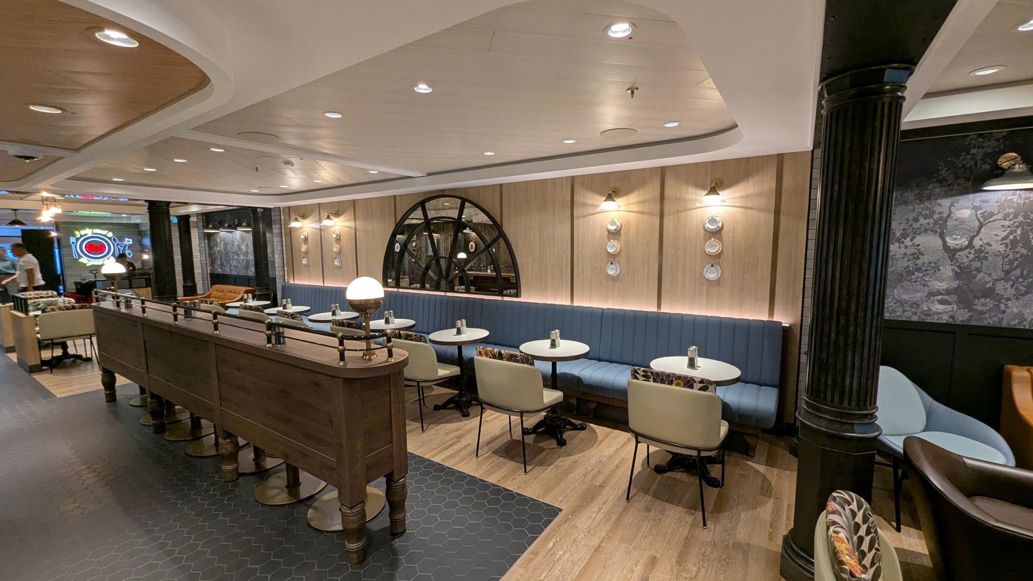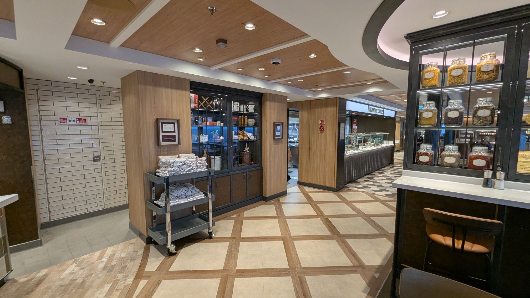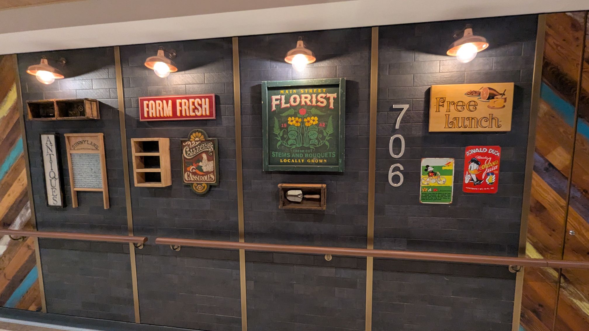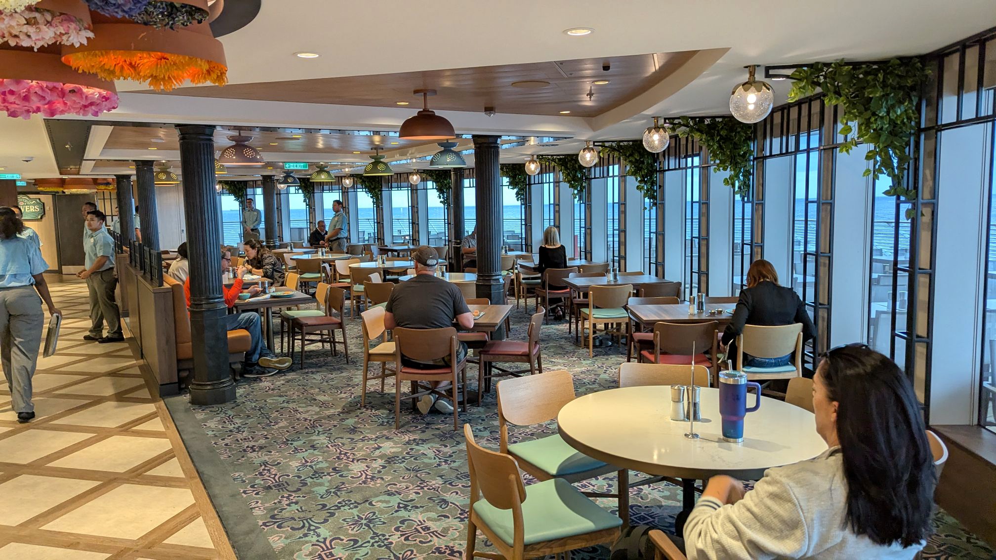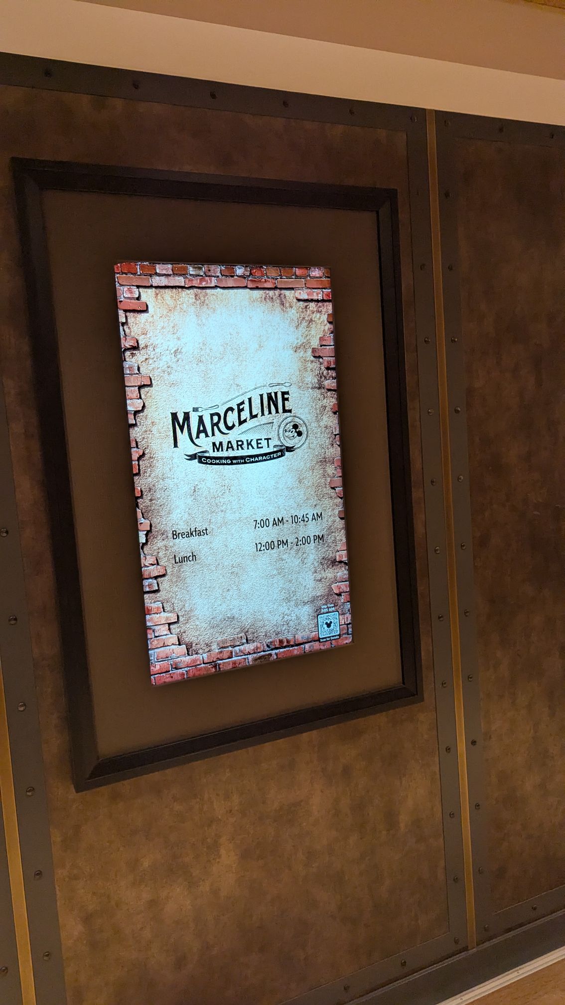 Below you'll find Doobie's photos of the Marceline Market (with the tagline "Cooking with Character"), the food hall located on Deck 11 of the ship. Named for Walt Disney’s early childhood hometown in Missouri, Marceline Market is a stylish food hall inspired by popular marketplaces around the world.