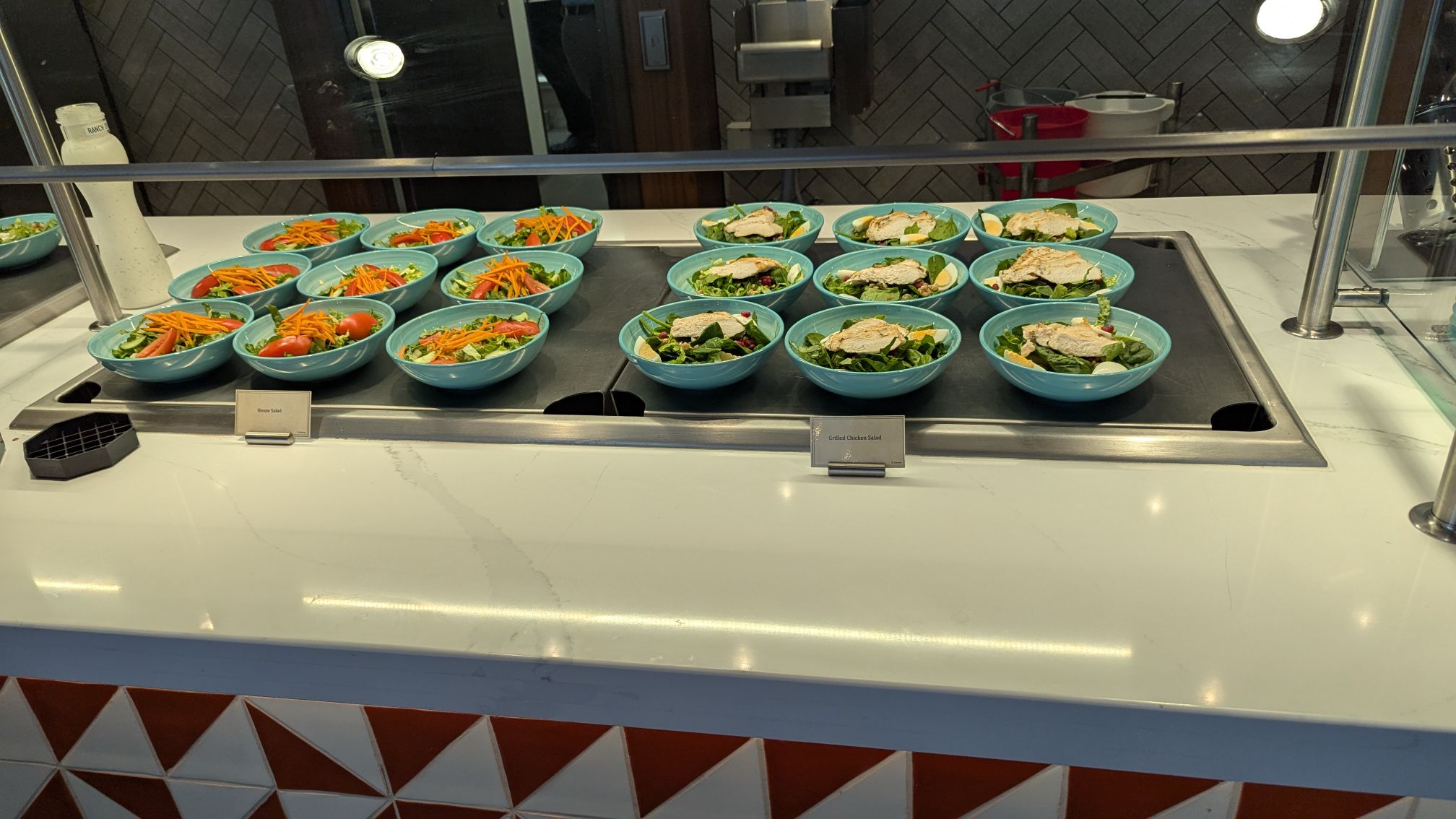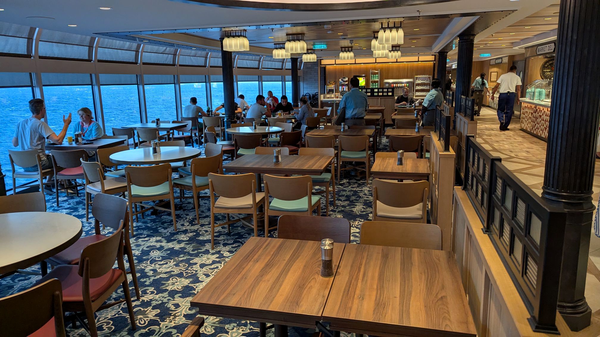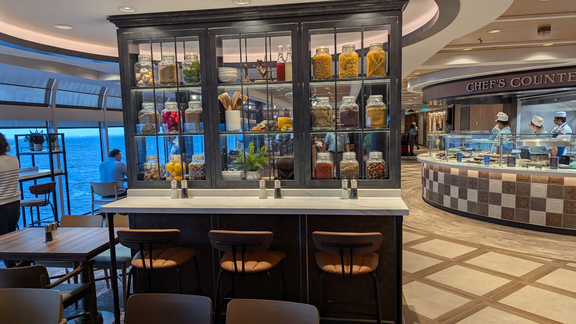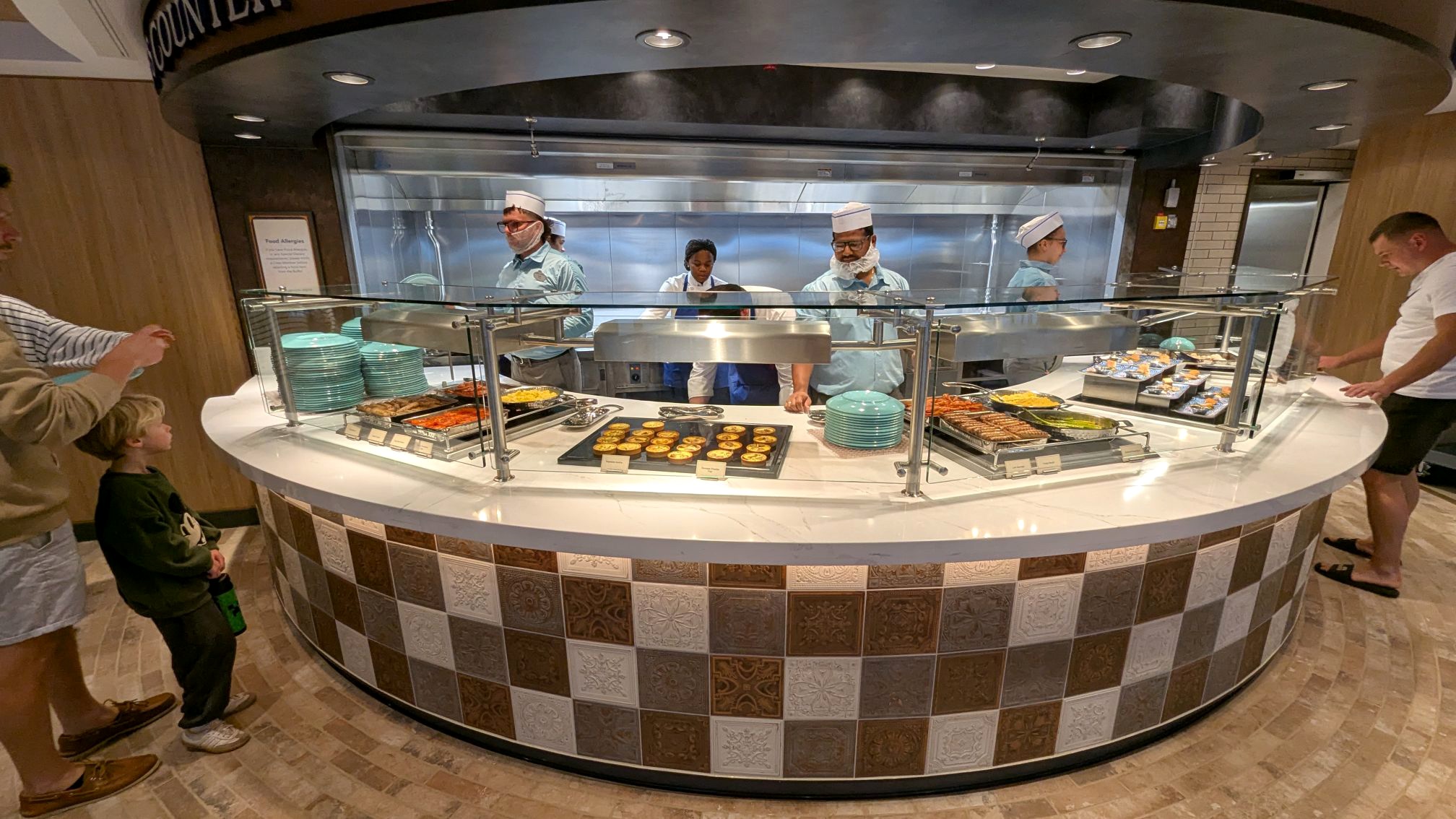 Below you'll find Doobie's photos of the Marceline Market (with the tagline "Cooking with Character"), the food hall located on Deck 11 of the ship. Named for Walt Disney’s early childhood hometown in Missouri, Marceline Market is a stylish food hall inspired by popular marketplaces around the world.