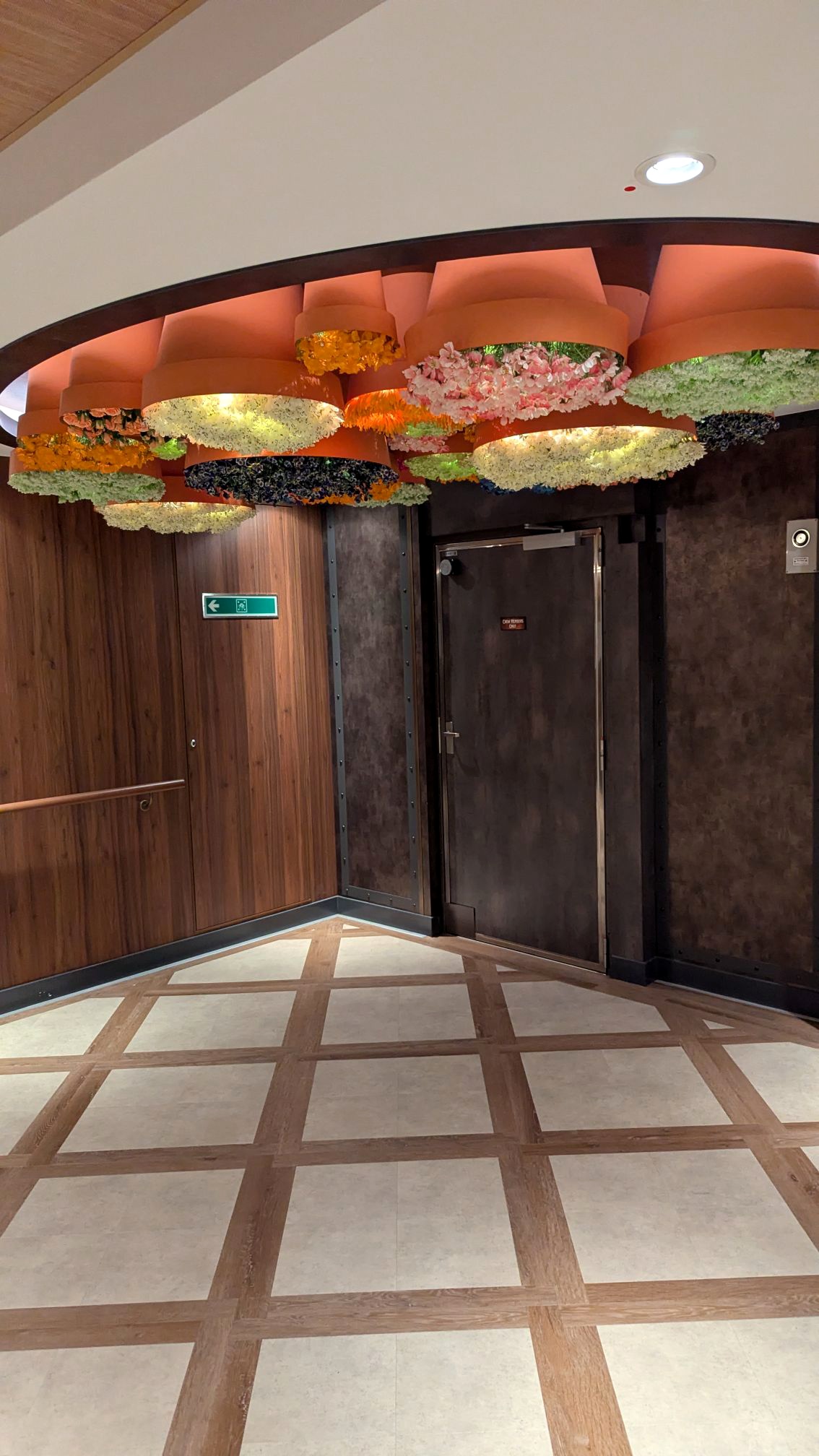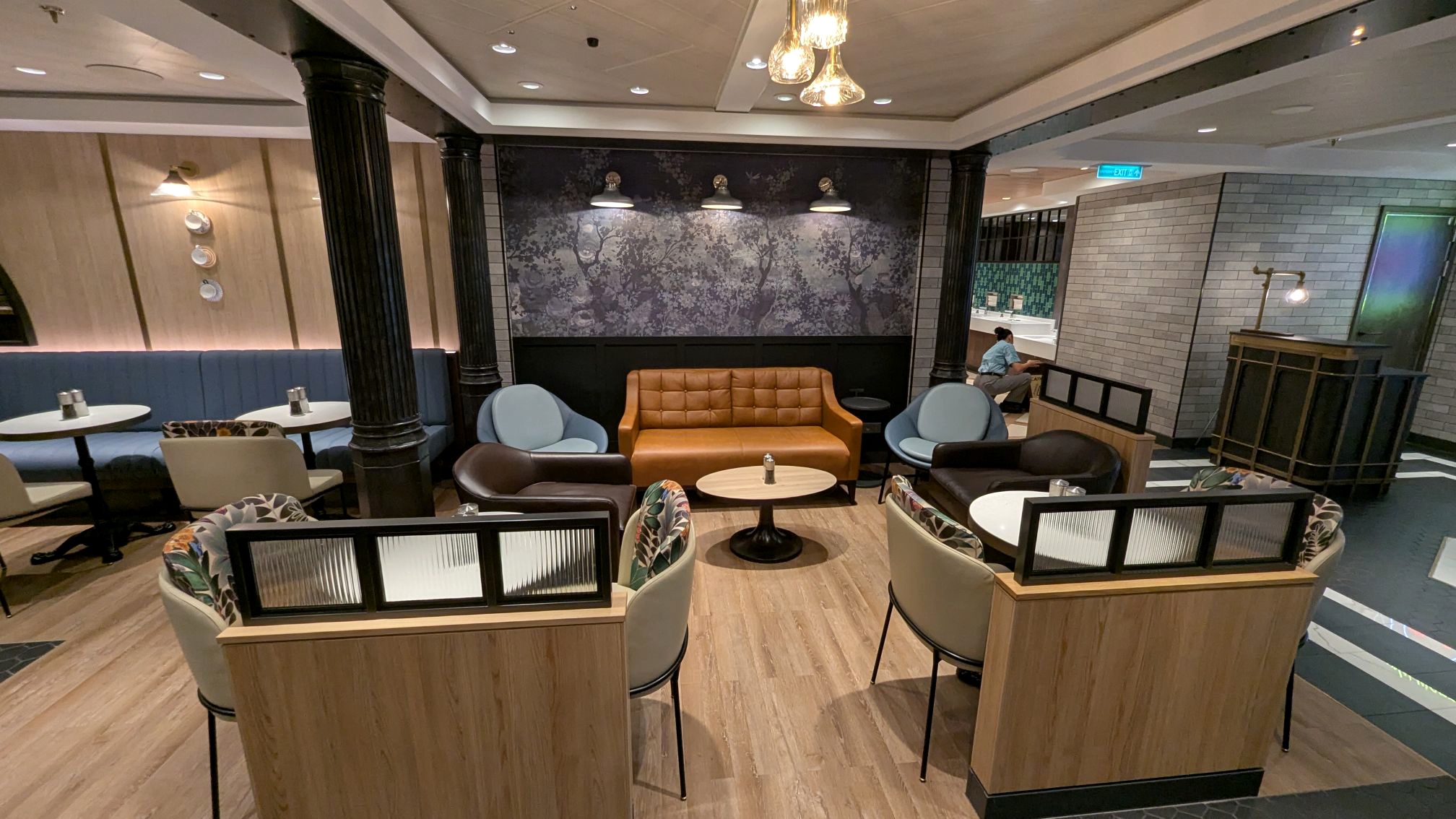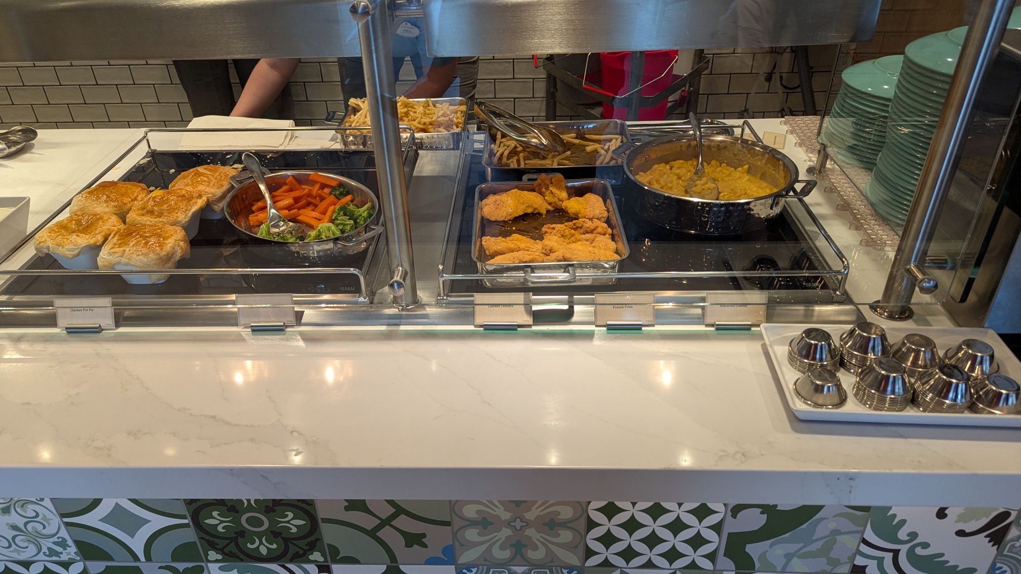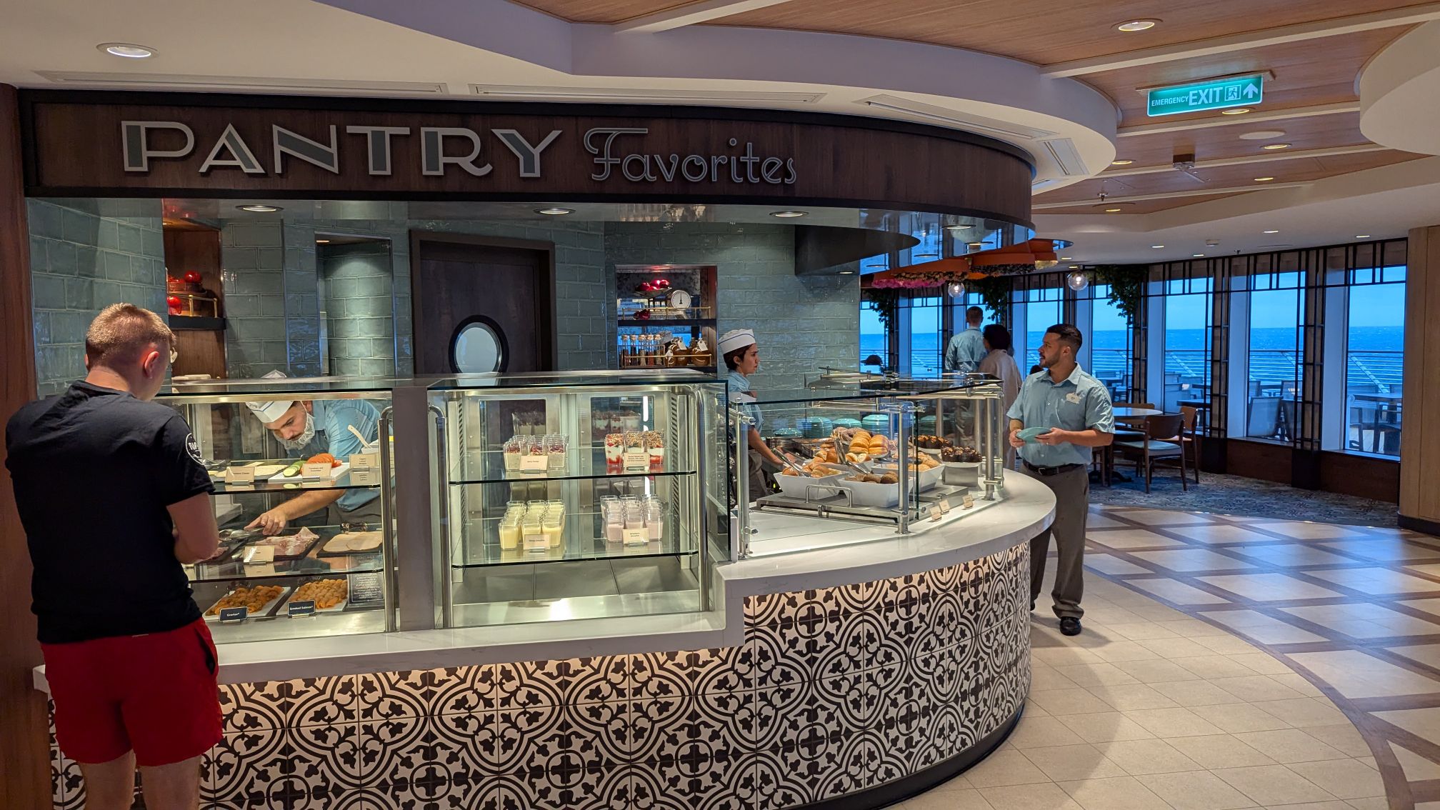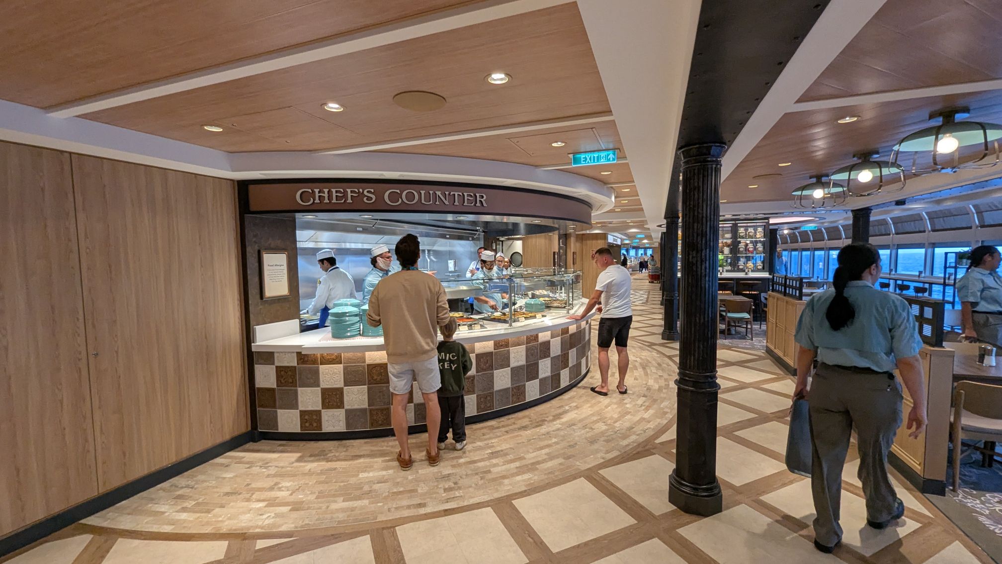 Below you'll find Doobie's photos of the Marceline Market (with the tagline "Cooking with Character"), the food hall located on Deck 11 of the ship. Named for Walt Disney’s early childhood hometown in Missouri, Marceline Market is a stylish food hall inspired by popular marketplaces around the world.