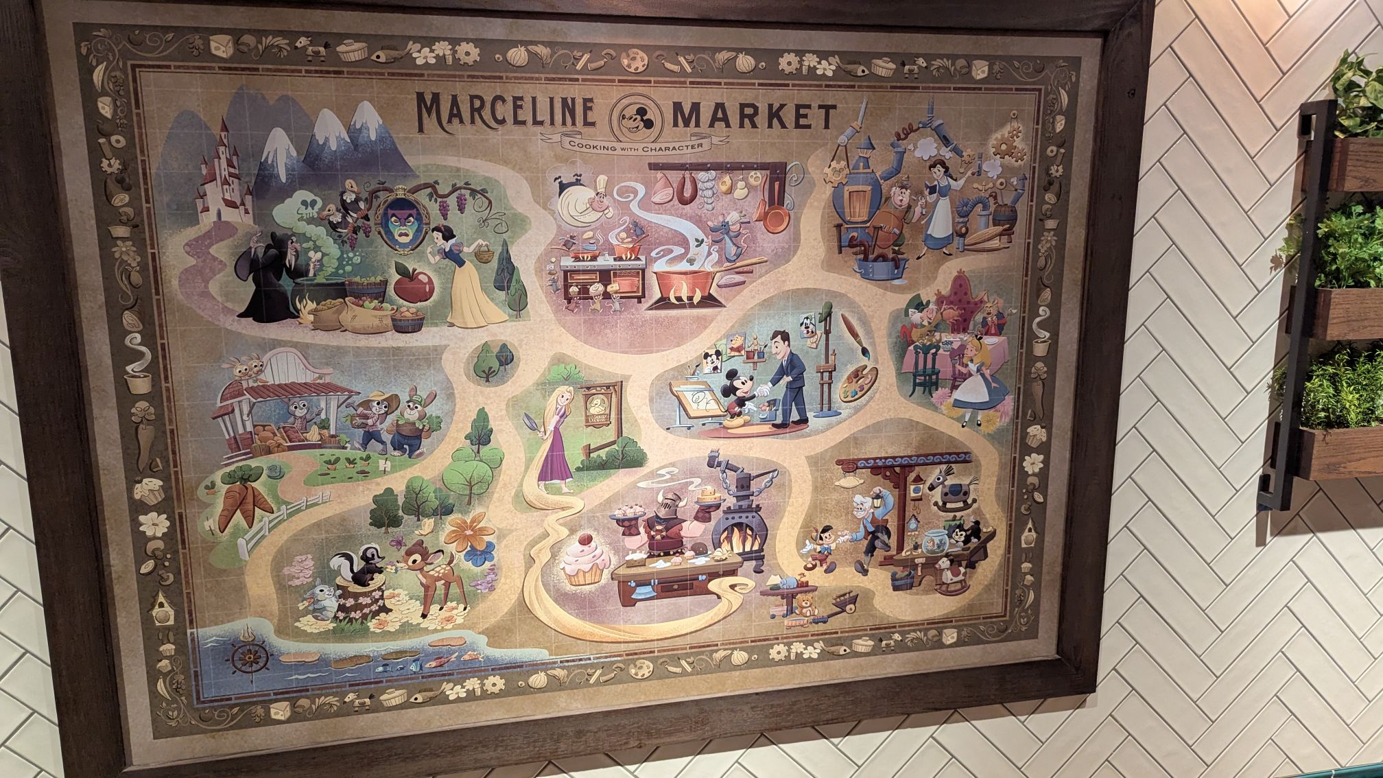 Featuring 10 food stalls and a café-style beverage bar in the center, Marceline Market is styled as an old industrial loft converted into a bustling marketplace, but with a distinctly Disney design twist: At this food hall, the local proprietors are Disney characters themselves, as each station is themed to beloved animated films such as Snow White and the Seven Dwarfs, Ratatouille, Alice in Wonderland, and more.