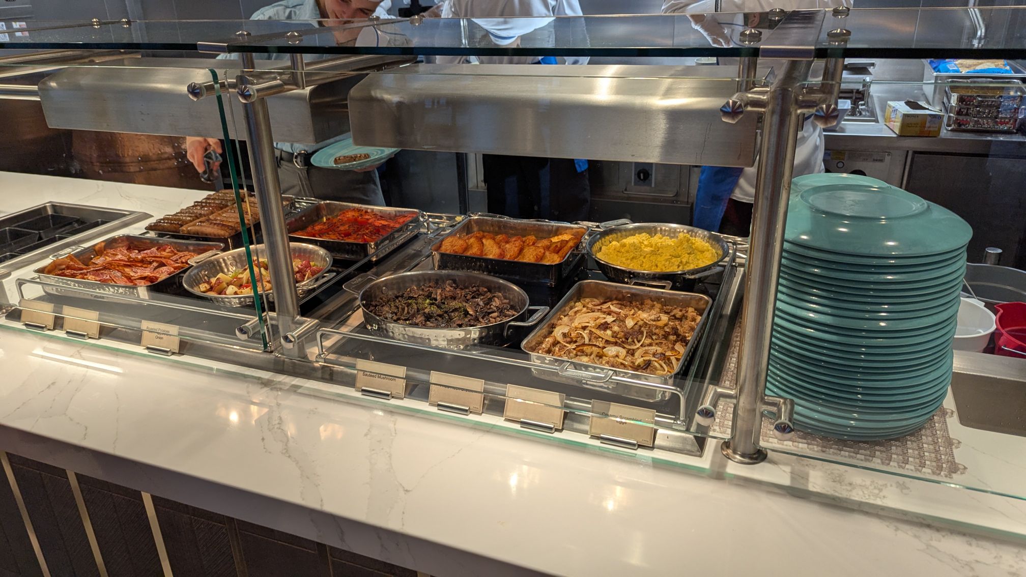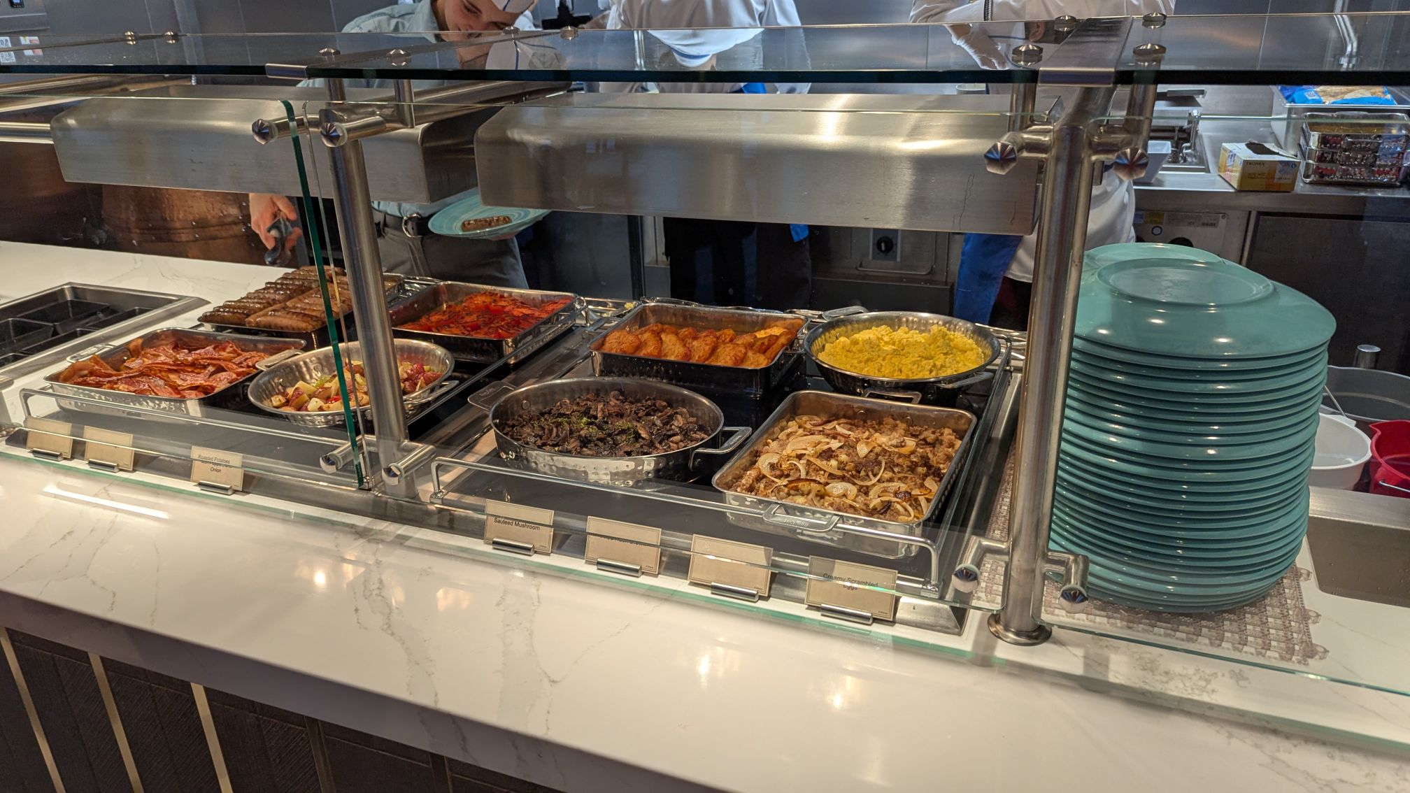 Guests can enjoy a variety of eats from a wide variety of cuisines, as well as complimentary drink offerings, from juice to soda.