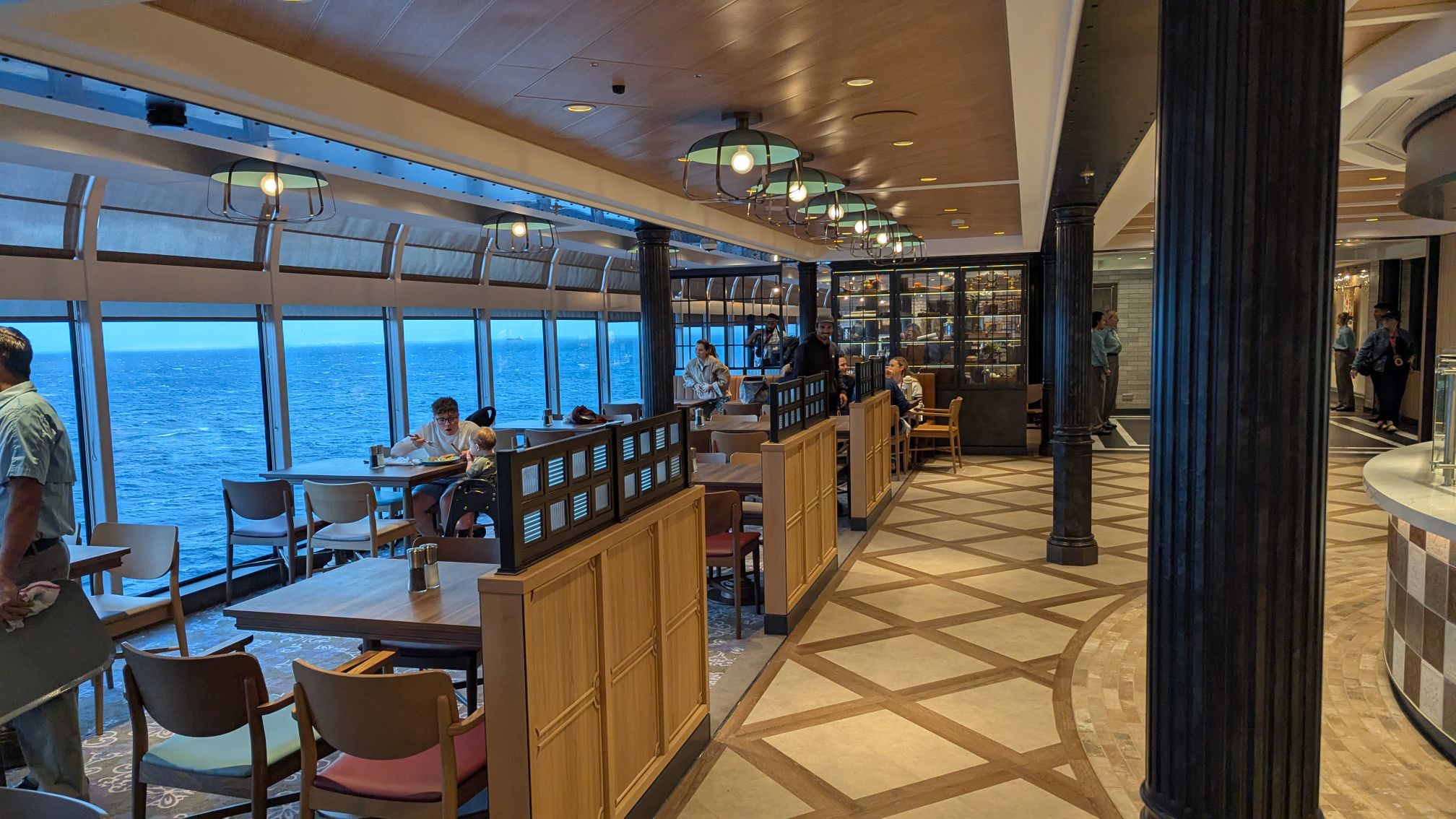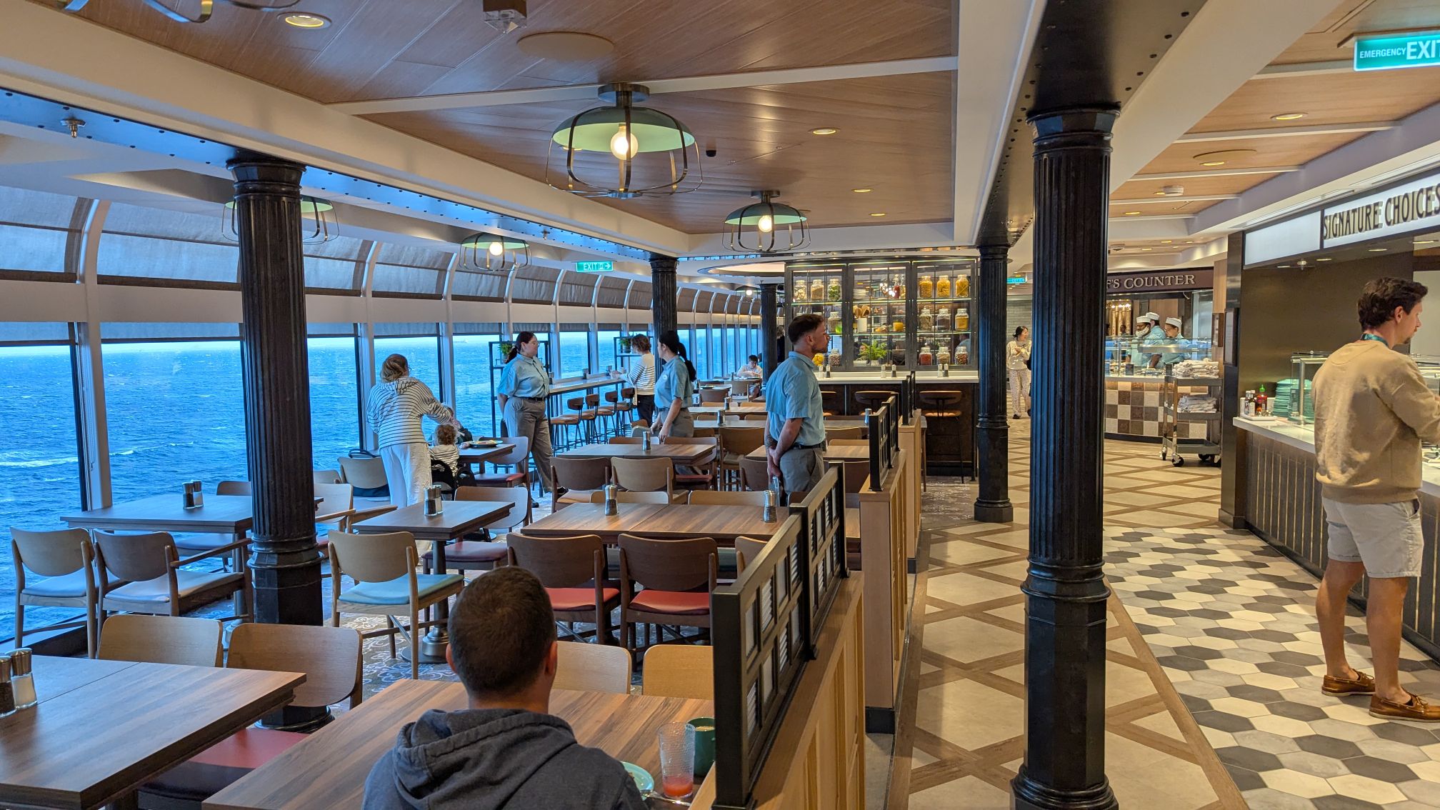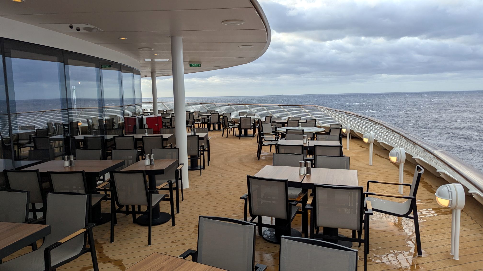 Guests can also enjoy their meal out on the veranda of the ship, complete with stunning ocean views.