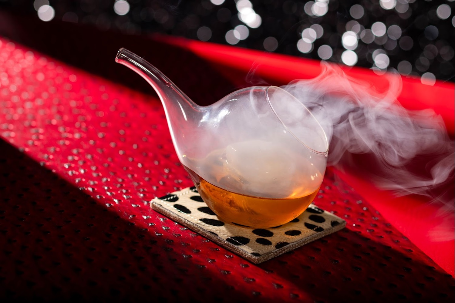 - Fearless Sir Galahad – Free Spirits Non-alcoholic Bourbon, bourbon barrel-aged maple syrup, and Angostura bitters finished with aromatic smoke