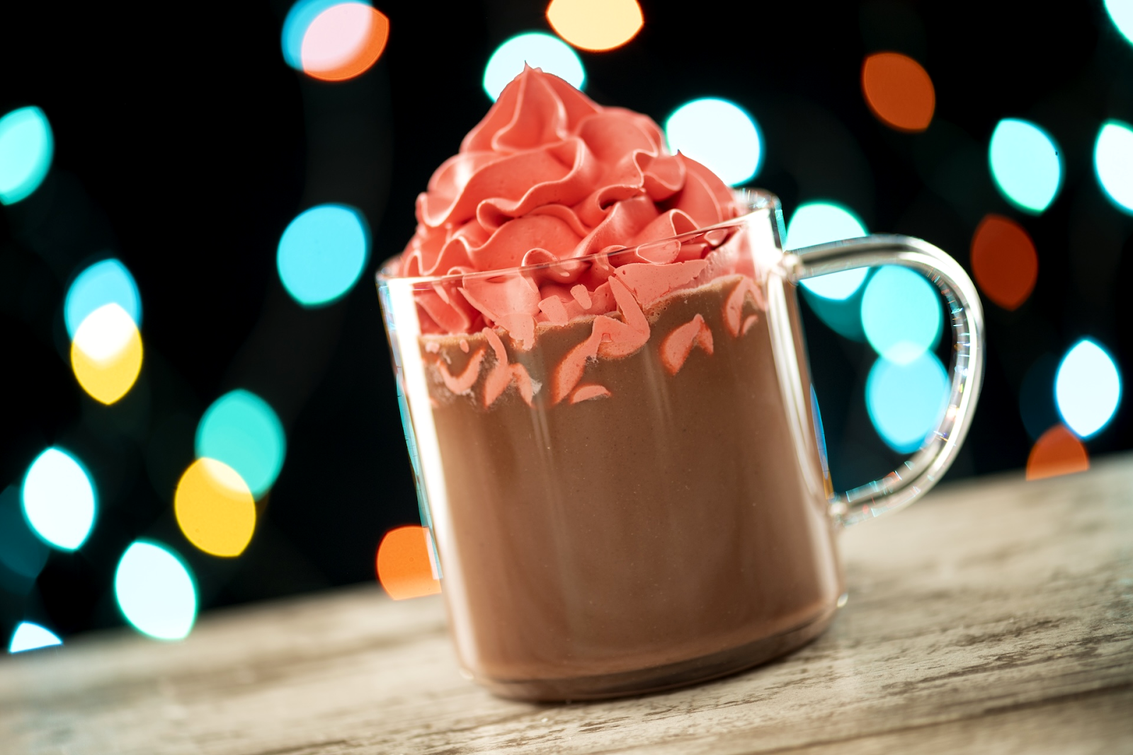 - Holiday Mickey Hot Cocoa: Hot Cocoa by Joffrey’s topped with whipped cream, caramel-chocolate brownie Mickey ears, and holiday sprinkles (Non-alcoholic)
