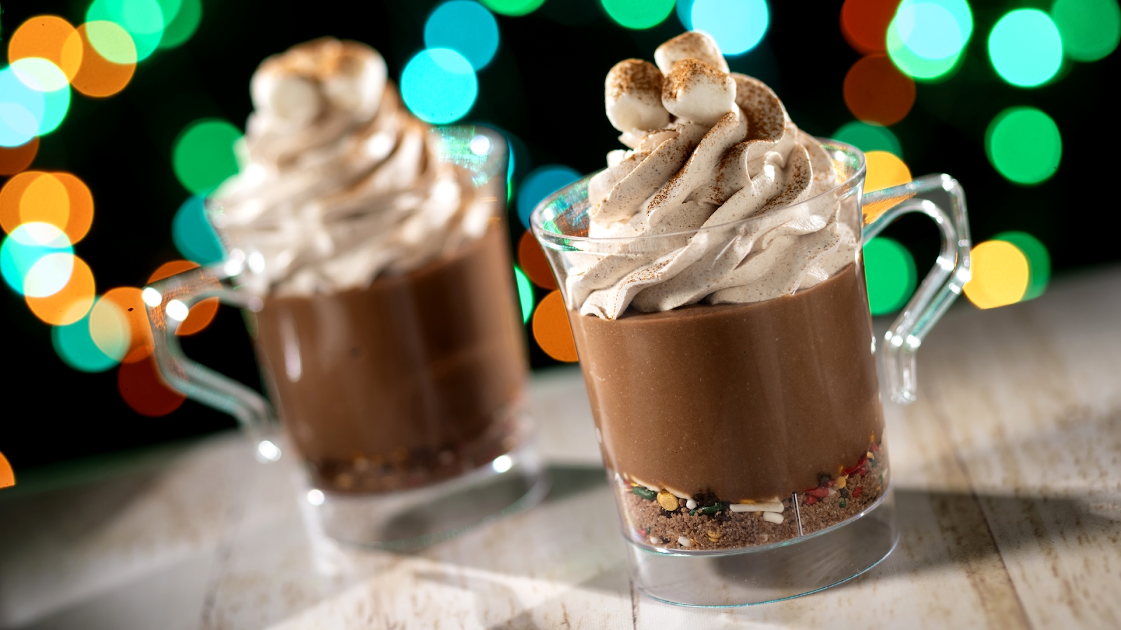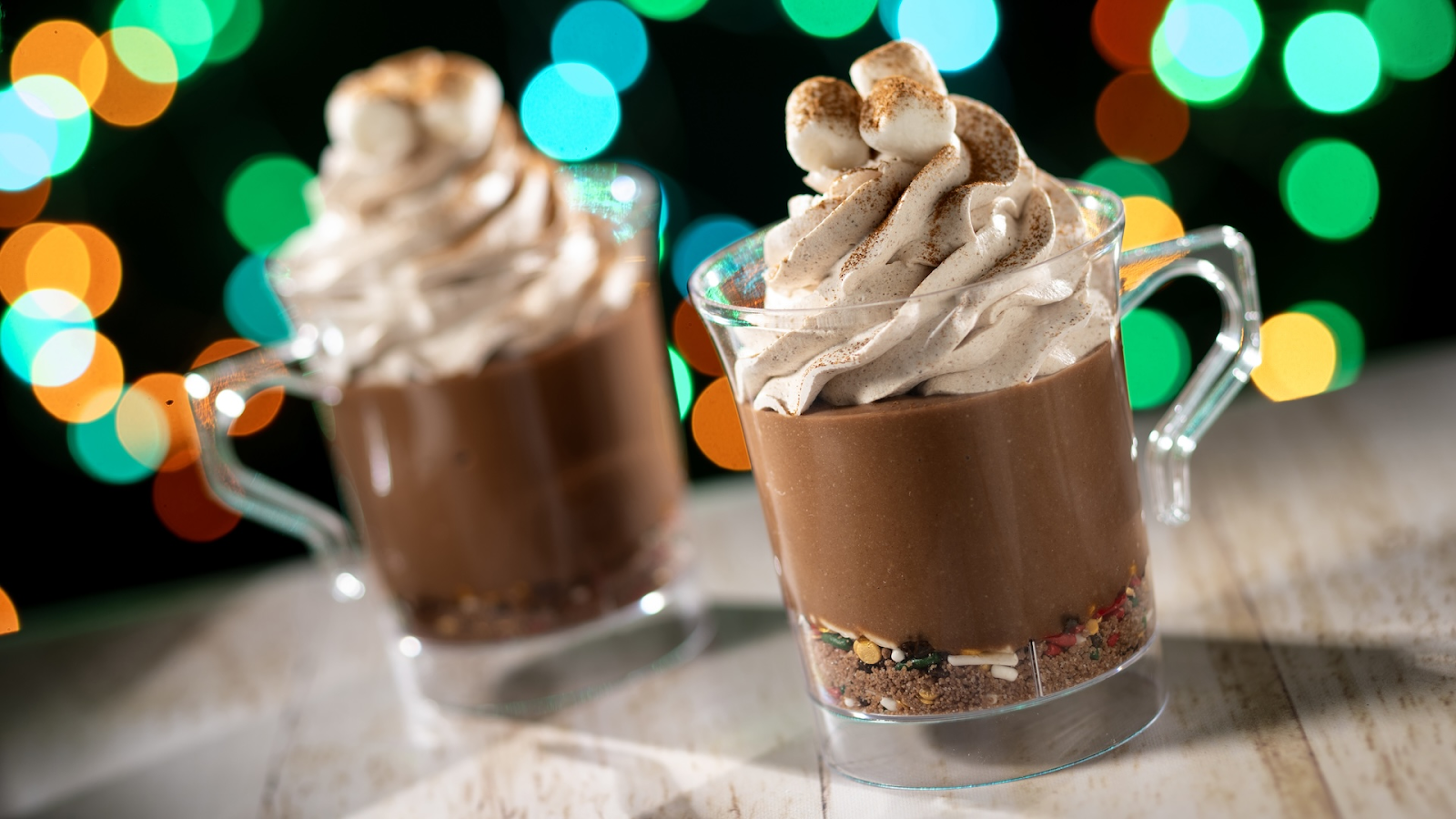 - Mexican Hot Cocoa Cheesecake: Holiday chocolate cookie streusel, whipped cinnamon-chocolate cheesecake, and spiced whipped cream topped with a sprinkle of cinnamon and mini marshmallows