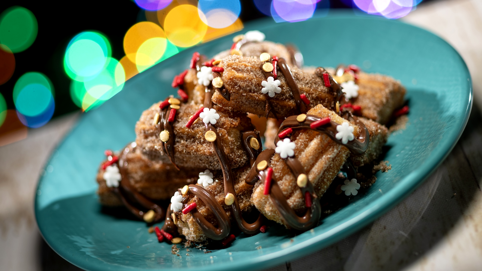 - Jolly Gingerbread Mini Churros: Gingerbread churros with chocolate-hazelnut sauce and holiday sprinkles (New)