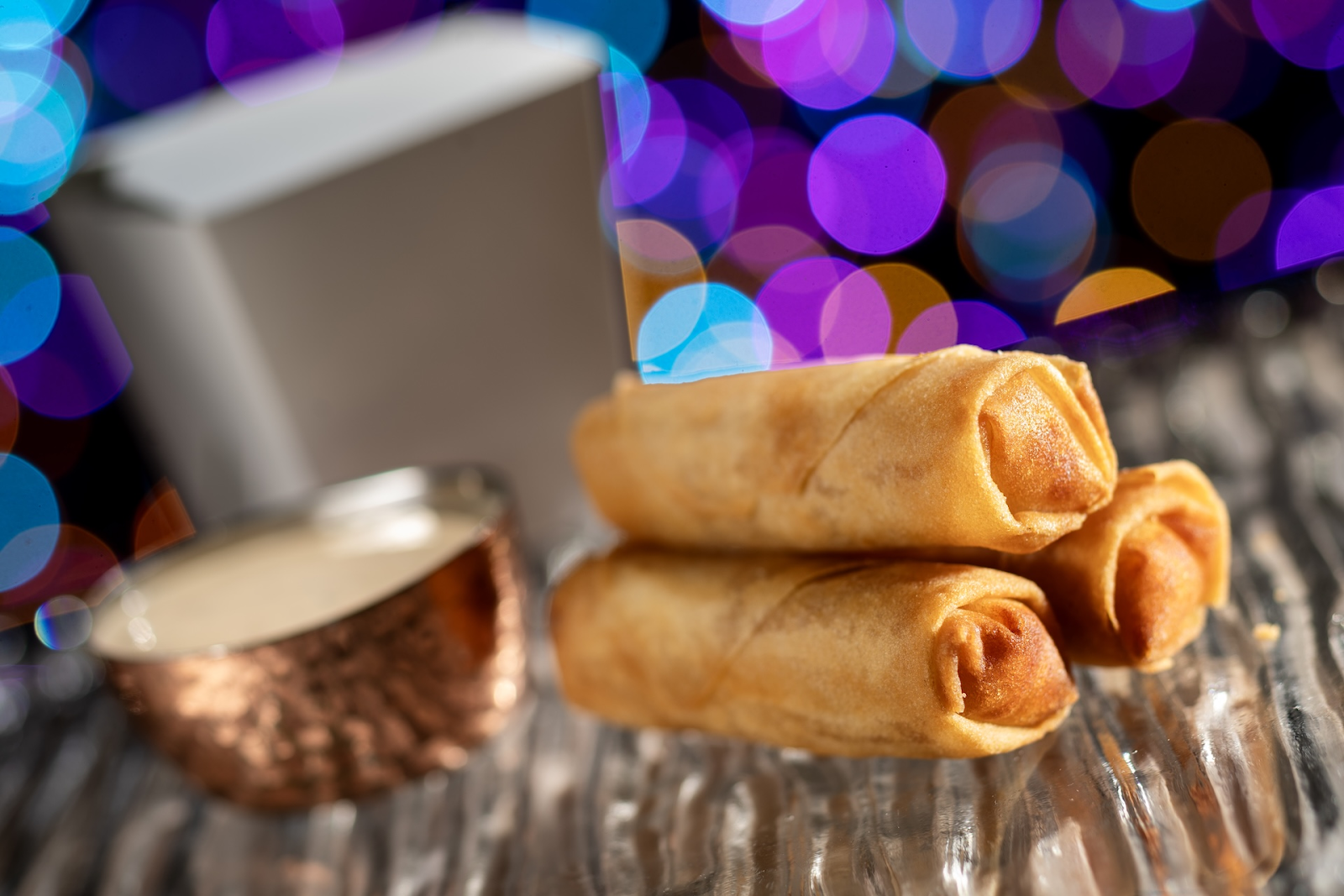 - Spring Rolls filled with buffalo chicken and served with jalapeño ranch dipping sauce