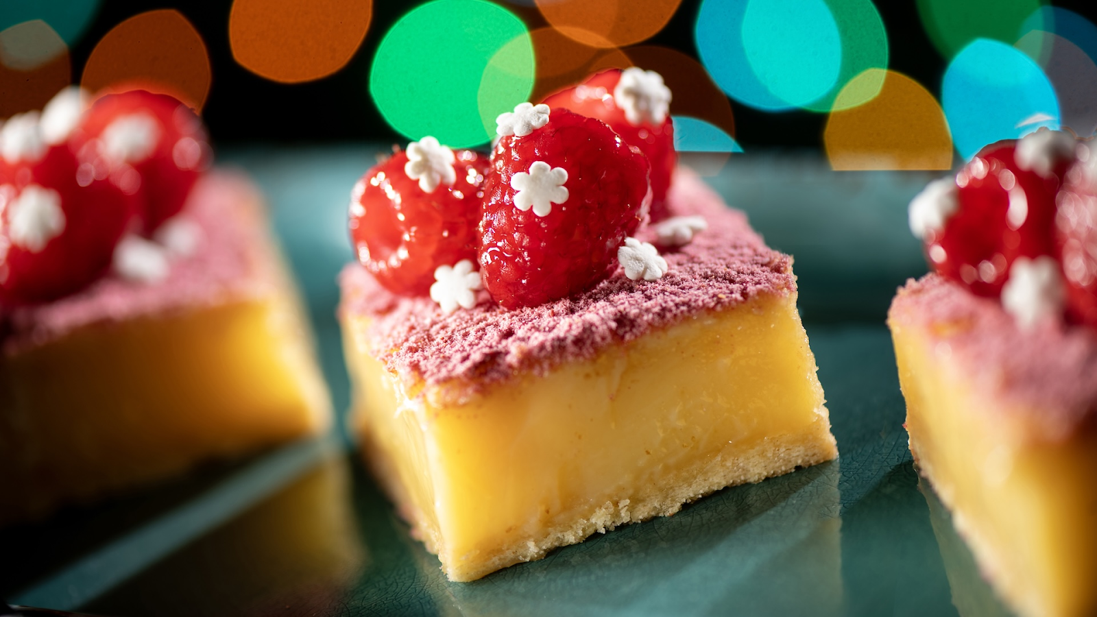 - Raspberry-Lemon Square: Lemon filling topped with raspberry powdered sugar and glazed raspberries (New)