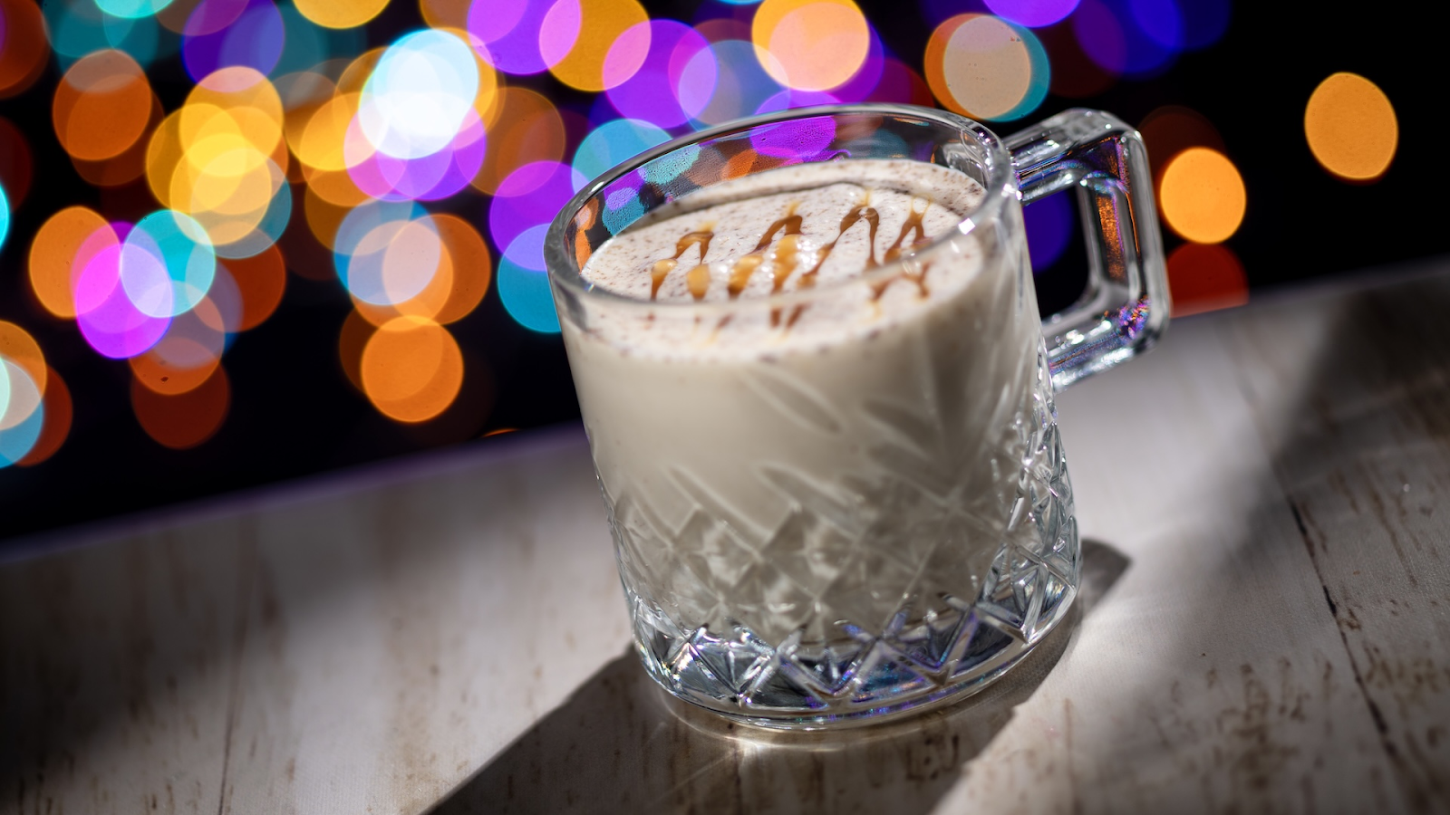 - Eggnog with Whisky: Traditional eggnog with Fireball Cinnamon Whisky and caramel swirl (New)