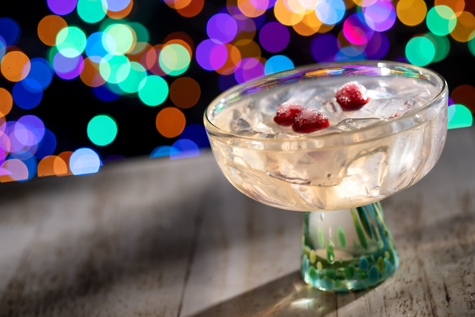 - Poinsettia Fizz: Grand Marnier Liqueur, cranberry juice, simple syrup, and prosecco garnished with frozen cranberries (New)
