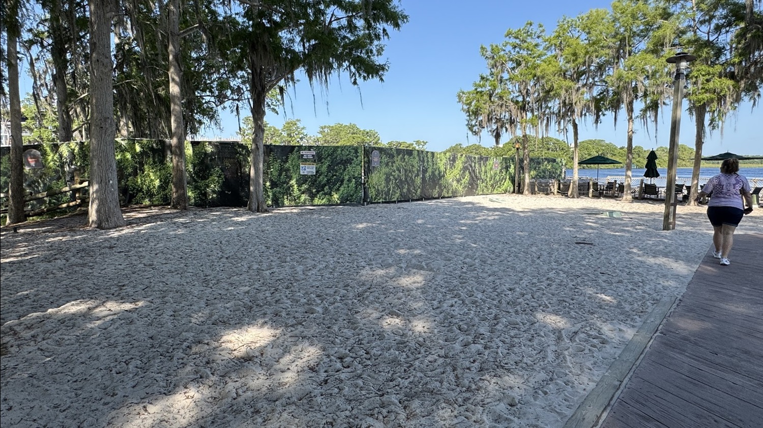 The construction of the new resort tower also blocks access to portions of the Settlement area, including a large swath of Clementine Beach at Fort Wilderness. The beach to the east of the boat transportation dock remains open, along with the marina for that transportation access. The remainder of what is actually open to guests on this side of the dock can be seen in the picture below.