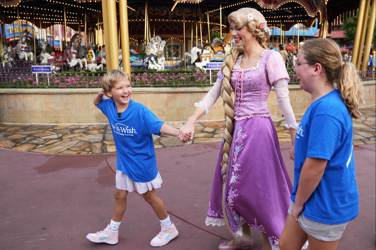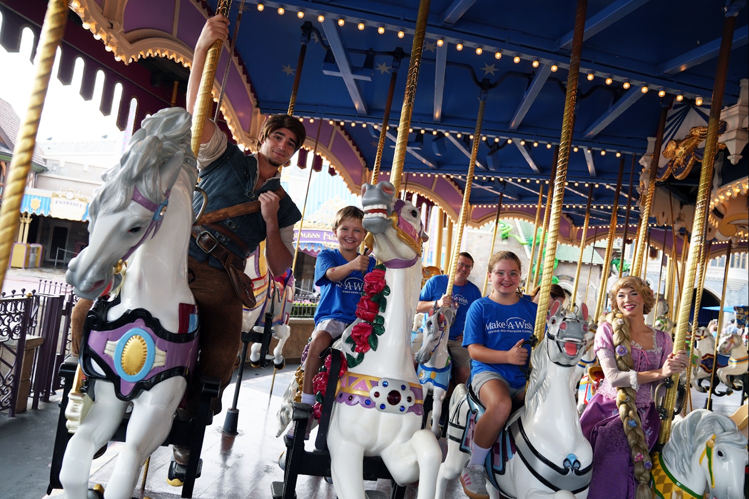 - Wishes often include trips to Walt Disney World, such as the one that Maddie from Melbourne, Florida recently enjoyed. Below you can see her and her family riding the Prince Charming Regal Carrousel with Flynn Rider and Rapunzel from Tangled.