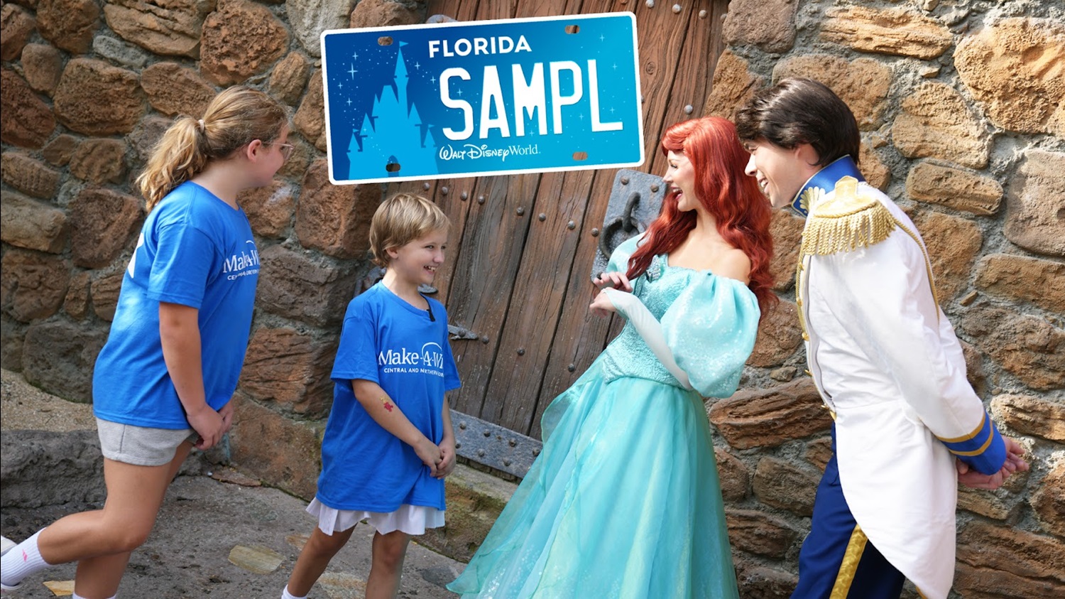 - This means that more than 600 wishes have been granted for children with critical illnesses since this license plate program launched in 2021. 100% of the proceeds from Walt Disney World license plates go directly to Make-a-Wish.