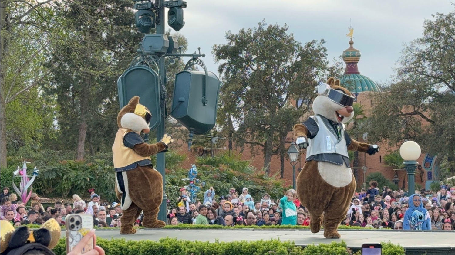 The singers from the Disney Music Hits Concert at Videopolis then join the show to perform a medley of Disney classics, including an appearance from Chip ‘n’ Dale (or, in French, Tic et Tac) in some Daft Punk-adjacent attire.