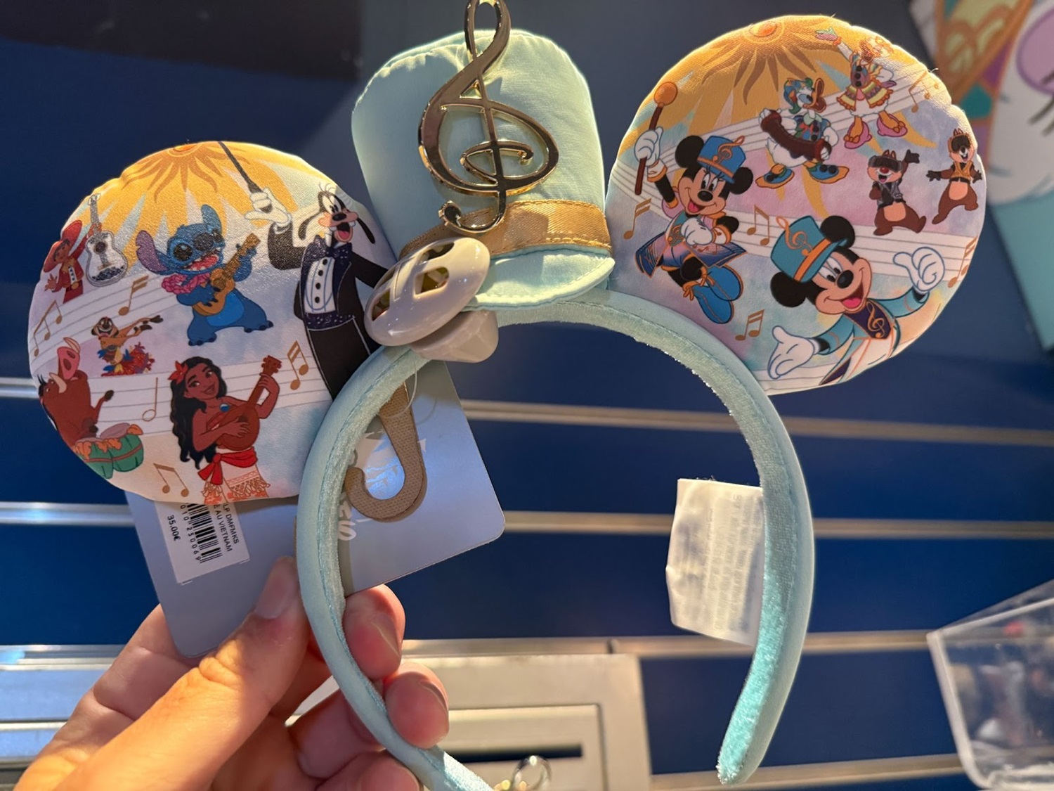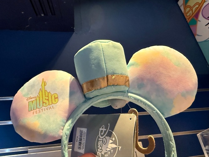 The new set of ears for the event utilize the pastel color scheme, with a band leader hat in between those iconic ears.