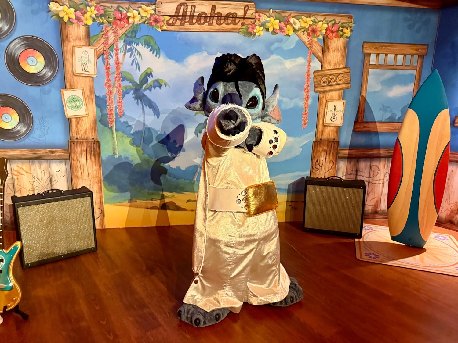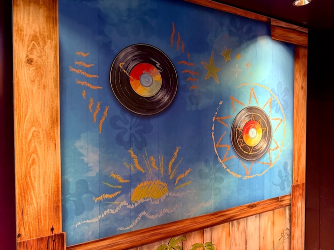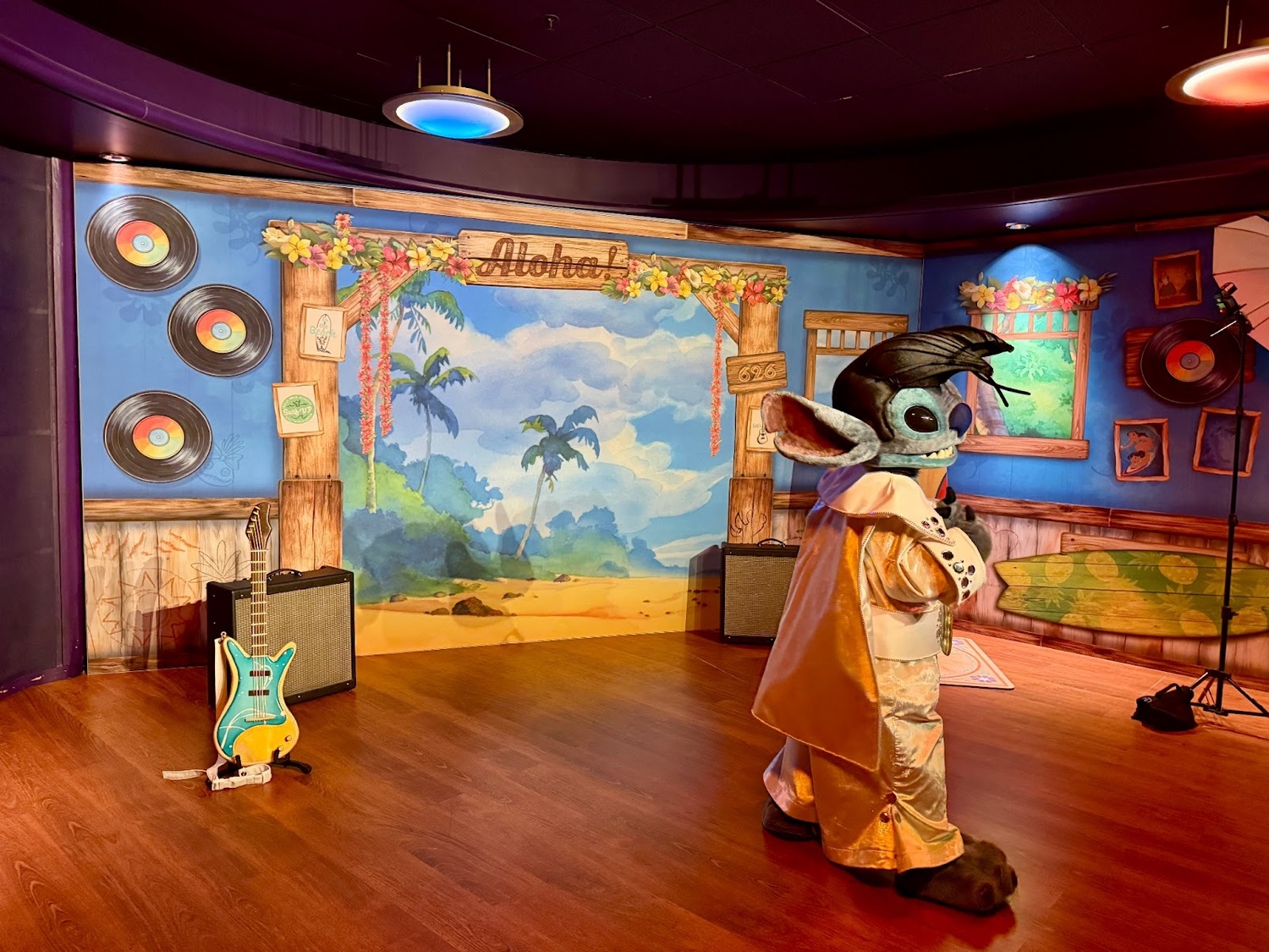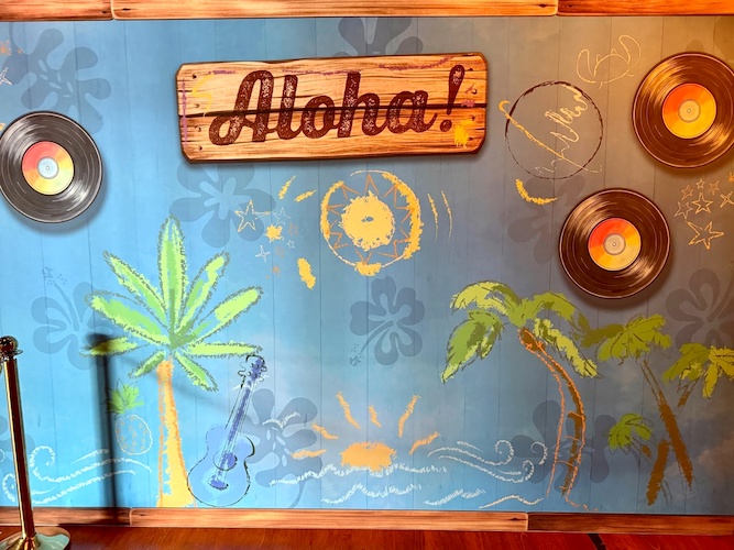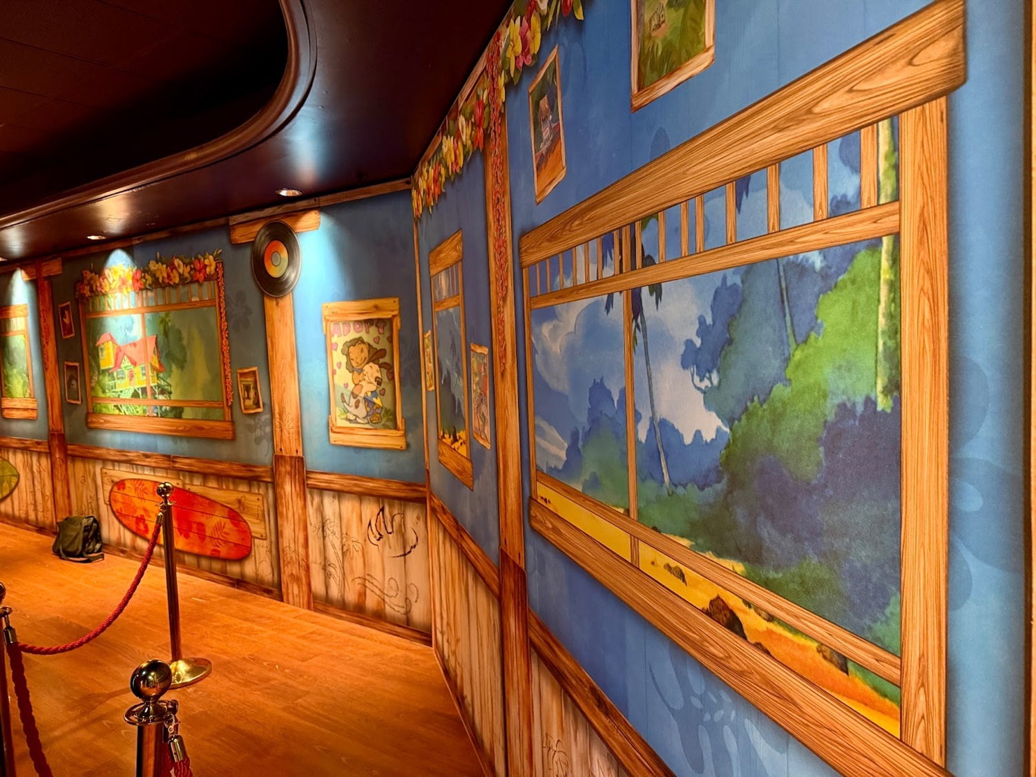 The queue and meeting area has been appropriately decked out in the Hawaiian inspired locale of Lilo & Stitch.