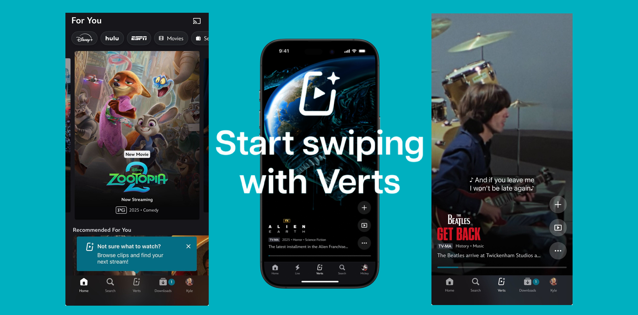 - Currently, Verts features clips from Disney+ and Hulu content.