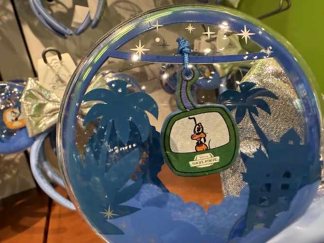 Spotted at Disney’s Pop Century Resort (though likely at the other official resorts on the Disney Skyliner line, like Disney’s Caribbean Beach Resort or Disney’s Art of Animation Resort, etc.), we found some Mouse Ears sporting some Disney Skyliner iconography and designs. Selling for $34.99 (as of press time, the mouse ears also feature a snap-on bow.