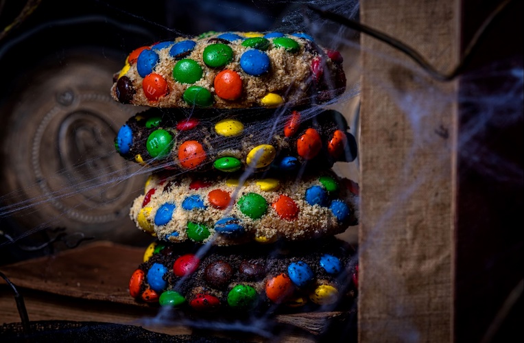- Frankenstein Cookie: Chocolate, double stuff chocolate sandwich cookies with sweet creme filling, and M&M’S Milk Chocolate Candies