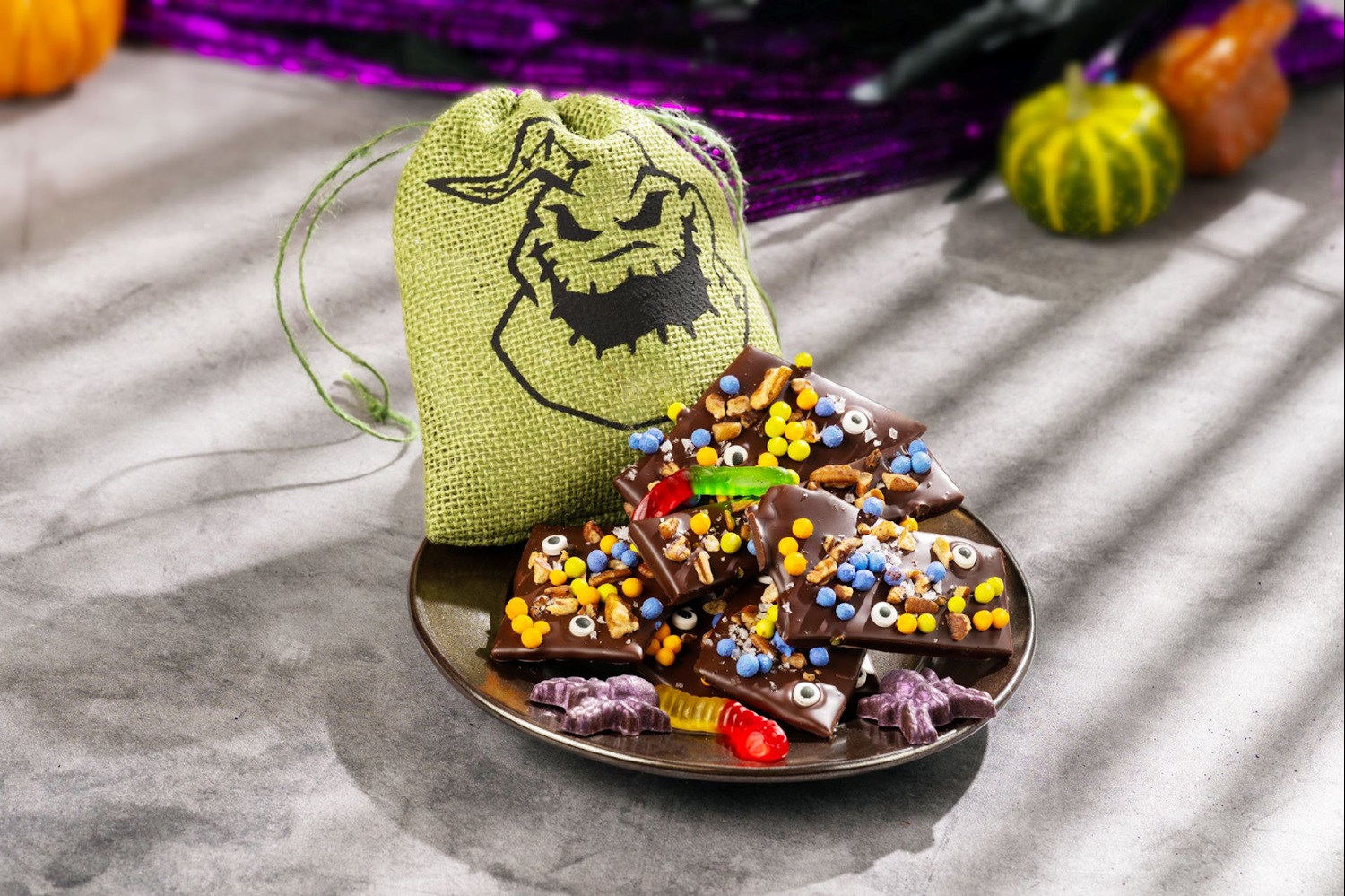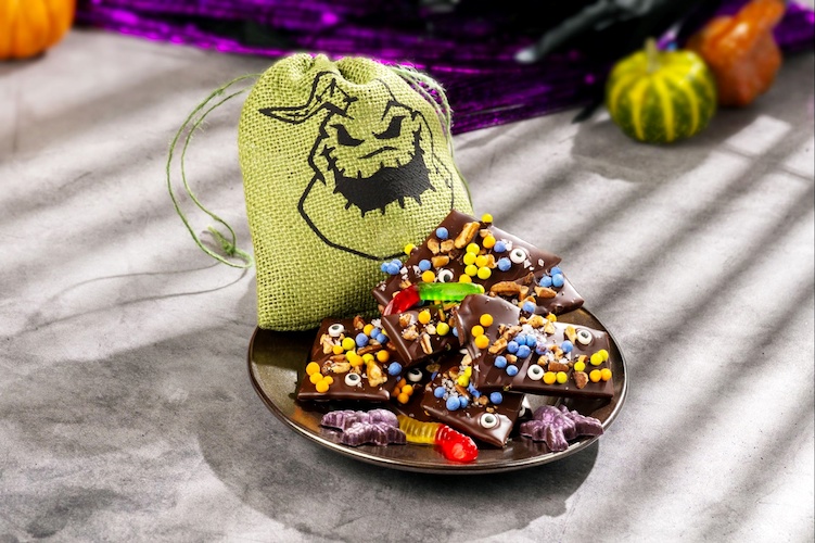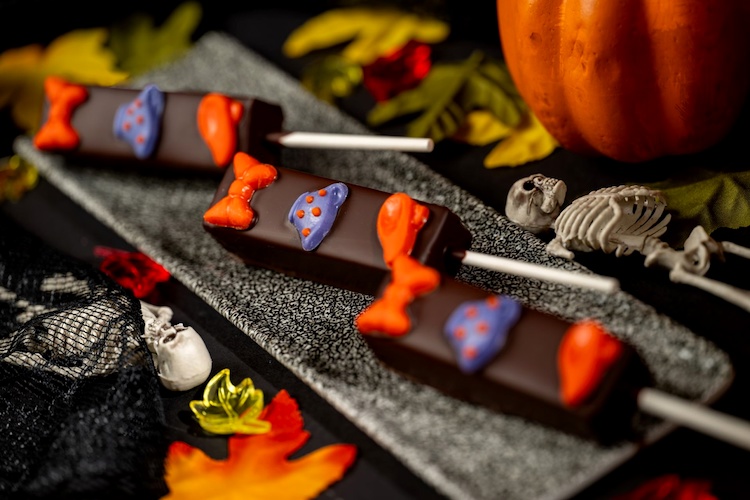 - Oogie Boogie Chocolate Toffee Bites: Dark chocolate, ruby chocolate, and house-made pumpkin-spiced toffee with crispy pearls