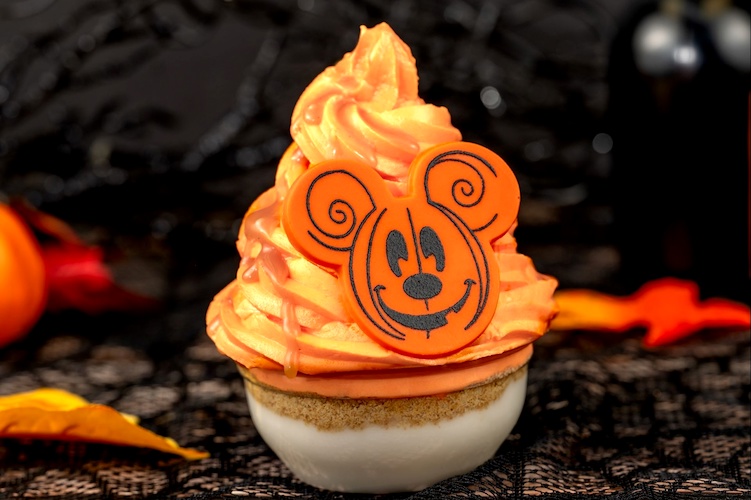 - Pumpkin Mickey Cone: Marshmallow, chocolate soft-serve, pumpkin waffle cone, Halloween sprinkles, and white chocolate pieces (New)