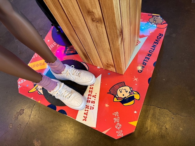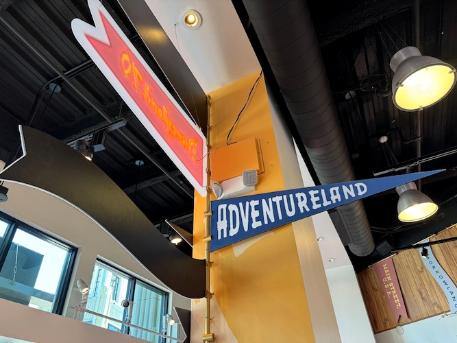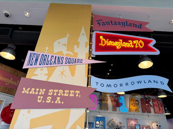 As guests walk into the store, they’re greeted by flags depicting each of Disneyland’s original five lands.
