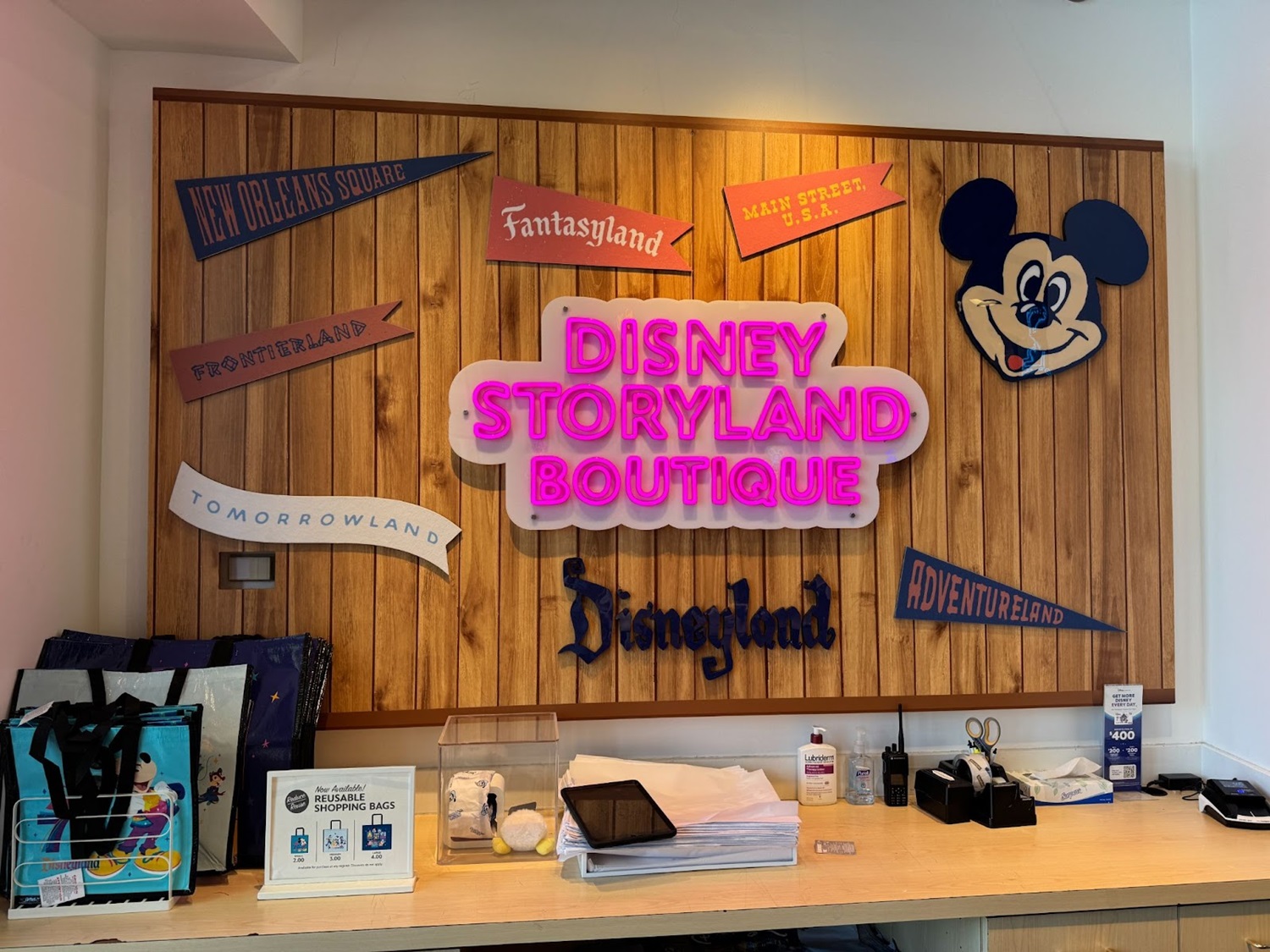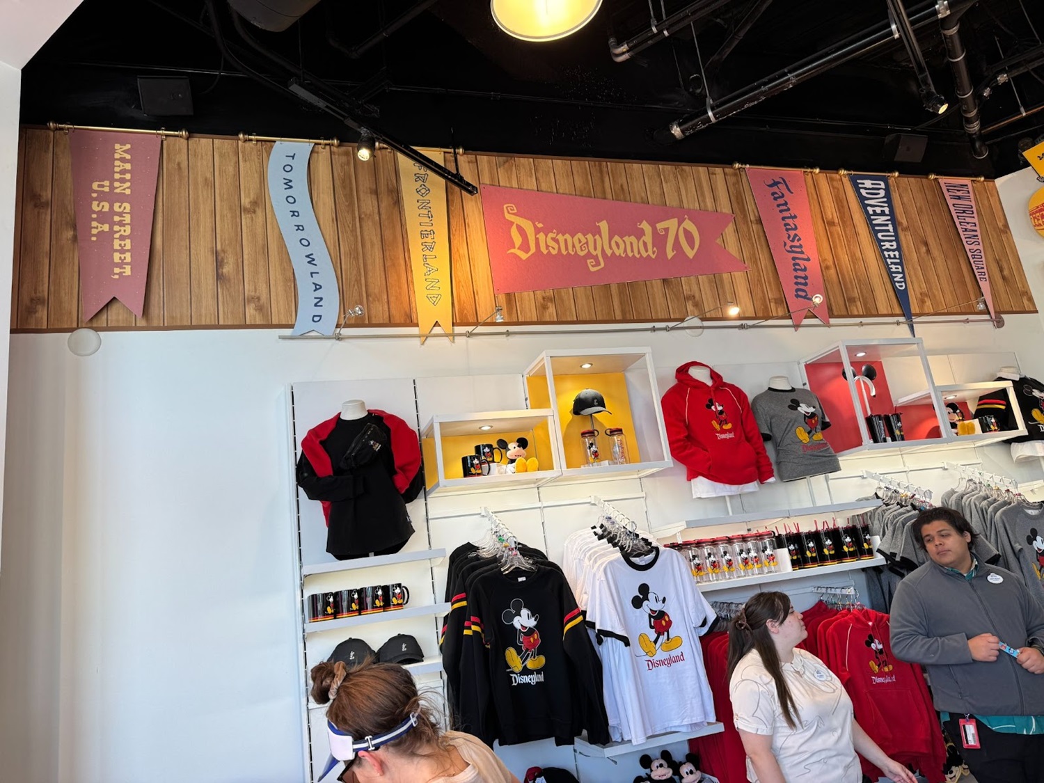 As guests walk into the store, they’re greeted by flags depicting each of Disneyland’s original five lands.