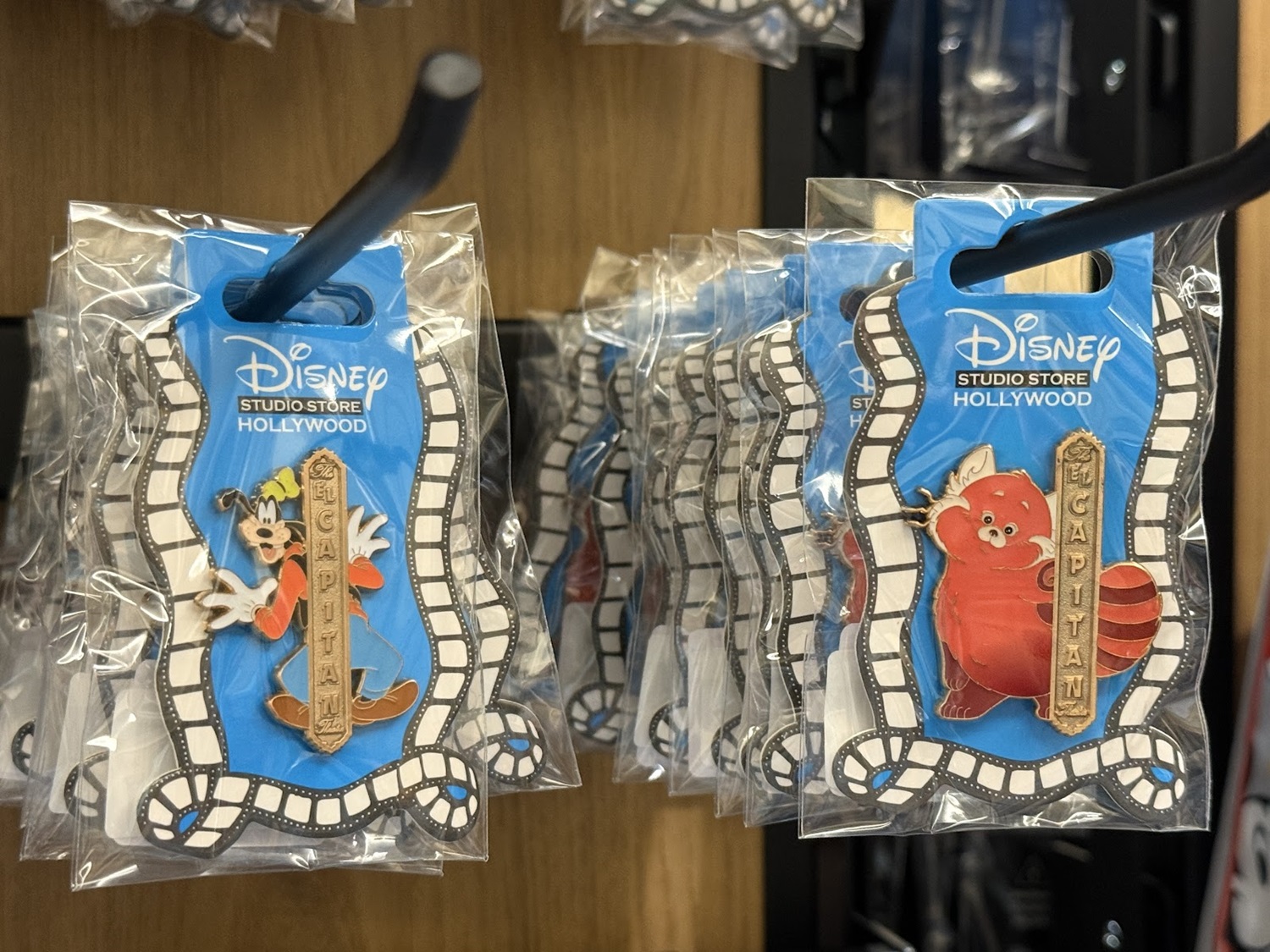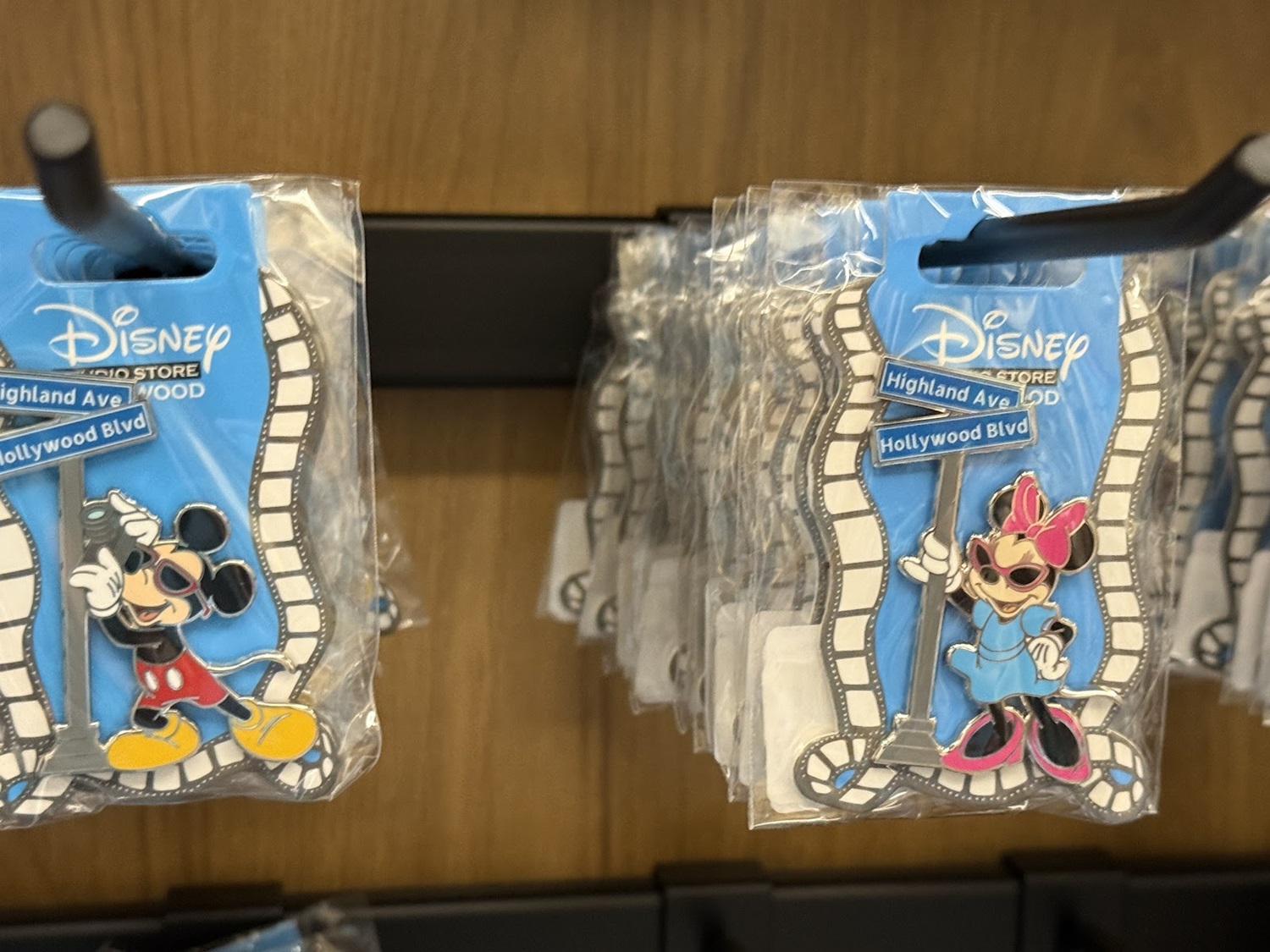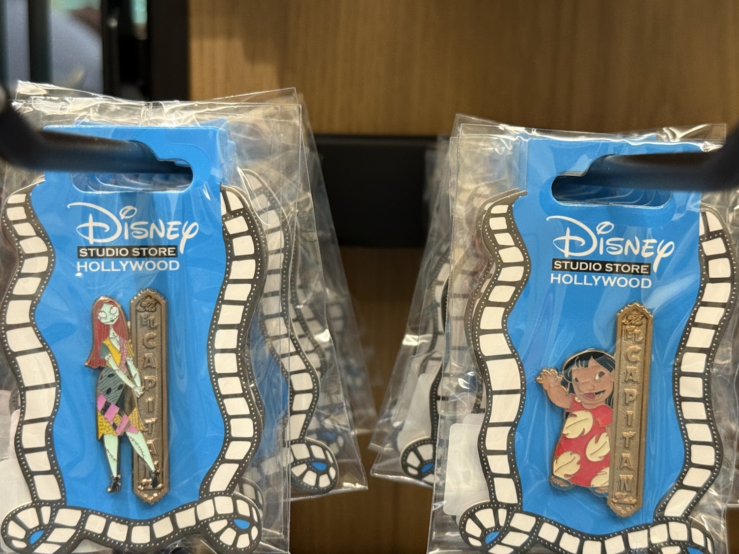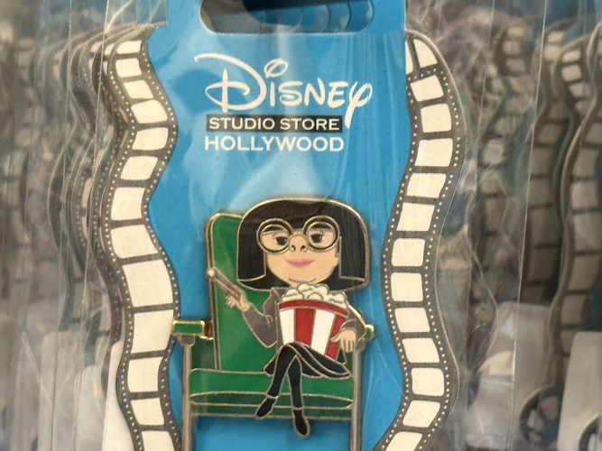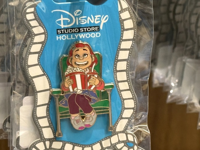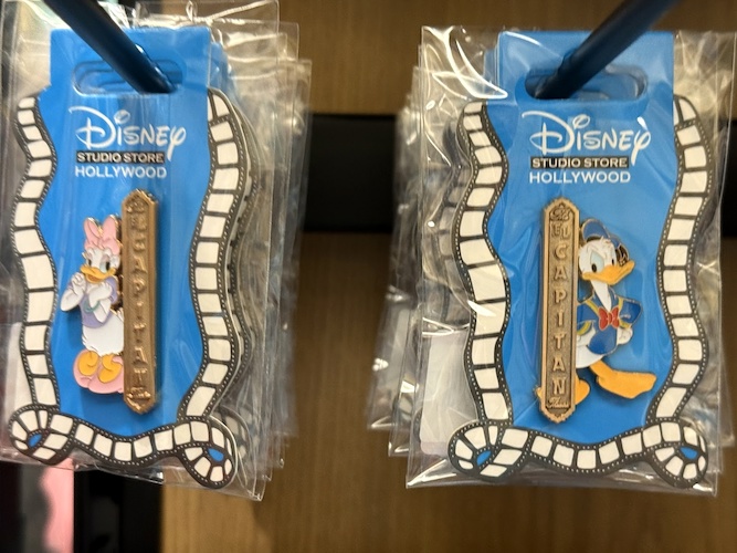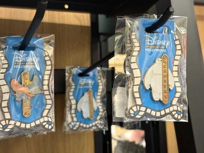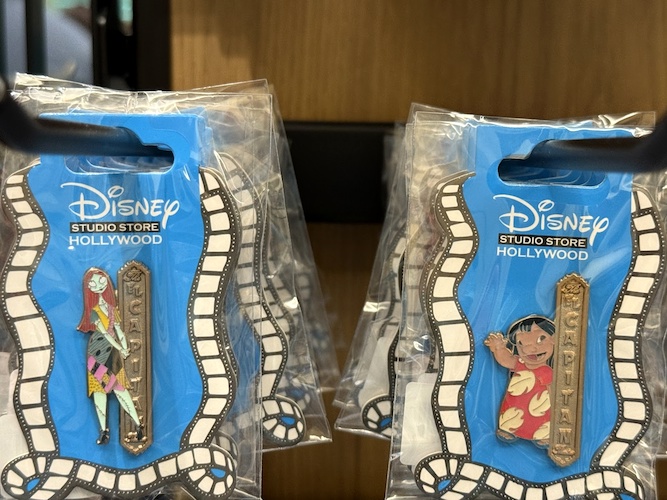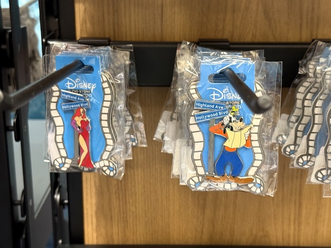 The real draw though are the open-edition pins that can be found in this location. Each features a classic or favorite character sitting in a theater seat. Others feature characters alongside the famous El Capitan Theatre marquee. As a reminder of where these came from, a number of the pins also feature characters at the road signs marking Hollywood and Highland.