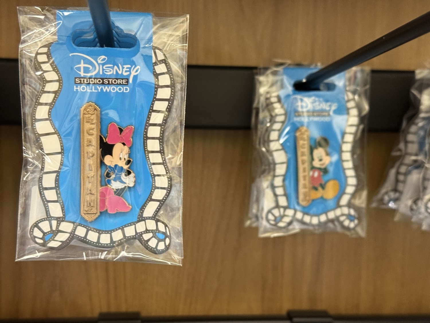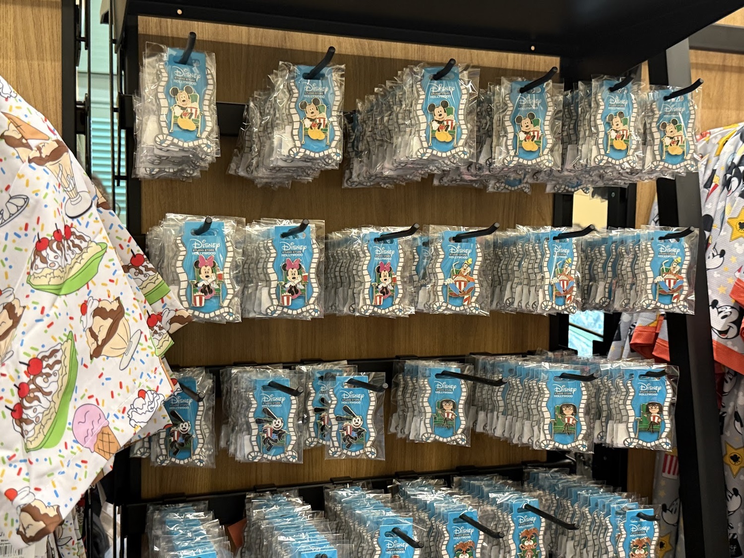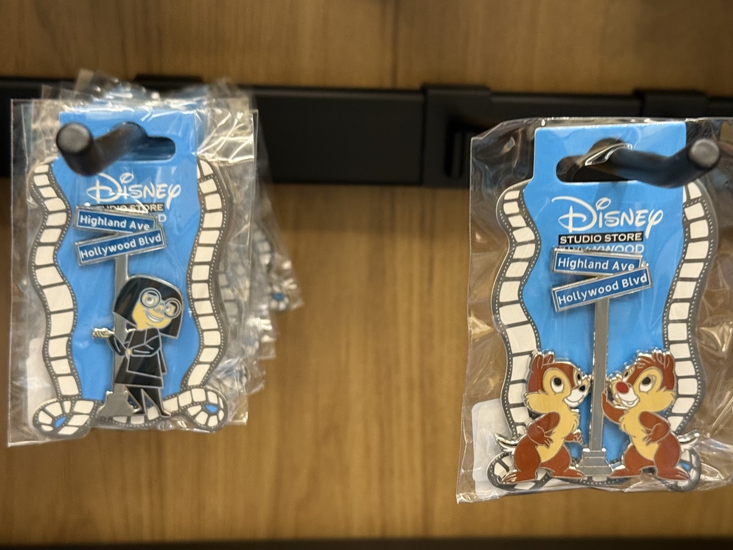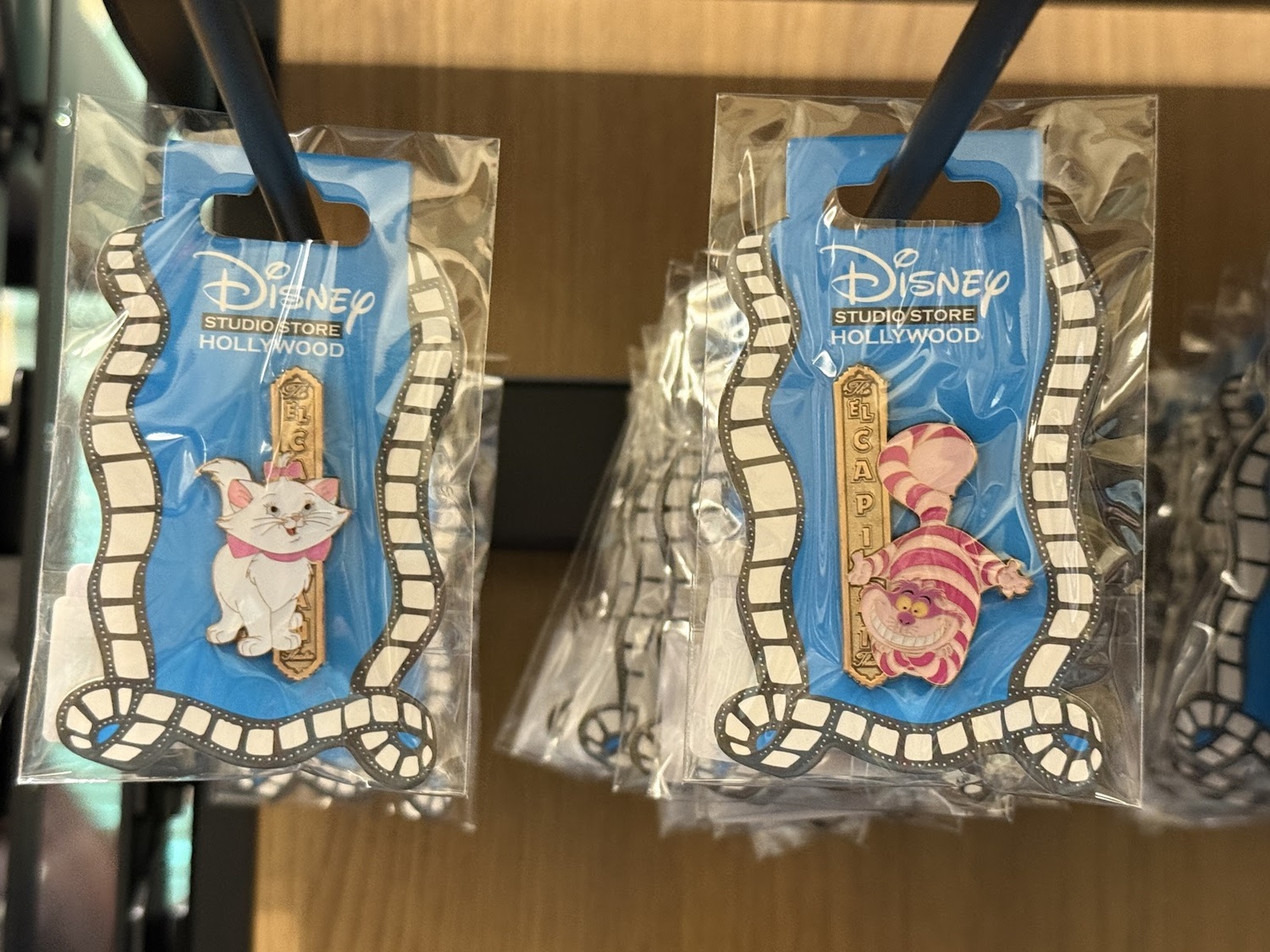 The real draw though are the open-edition pins that can be found in this location. Each features a classic or favorite character sitting in a theater seat. Others feature characters alongside the famous El Capitan Theatre marquee. As a reminder of where these came from, a number of the pins also feature characters at the road signs marking Hollywood and Highland.