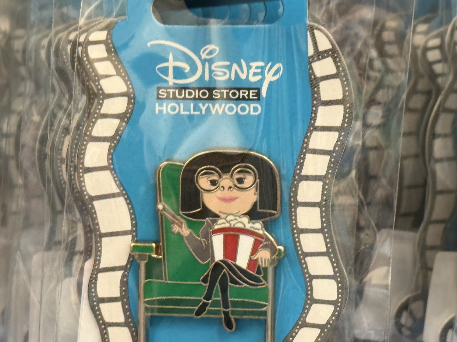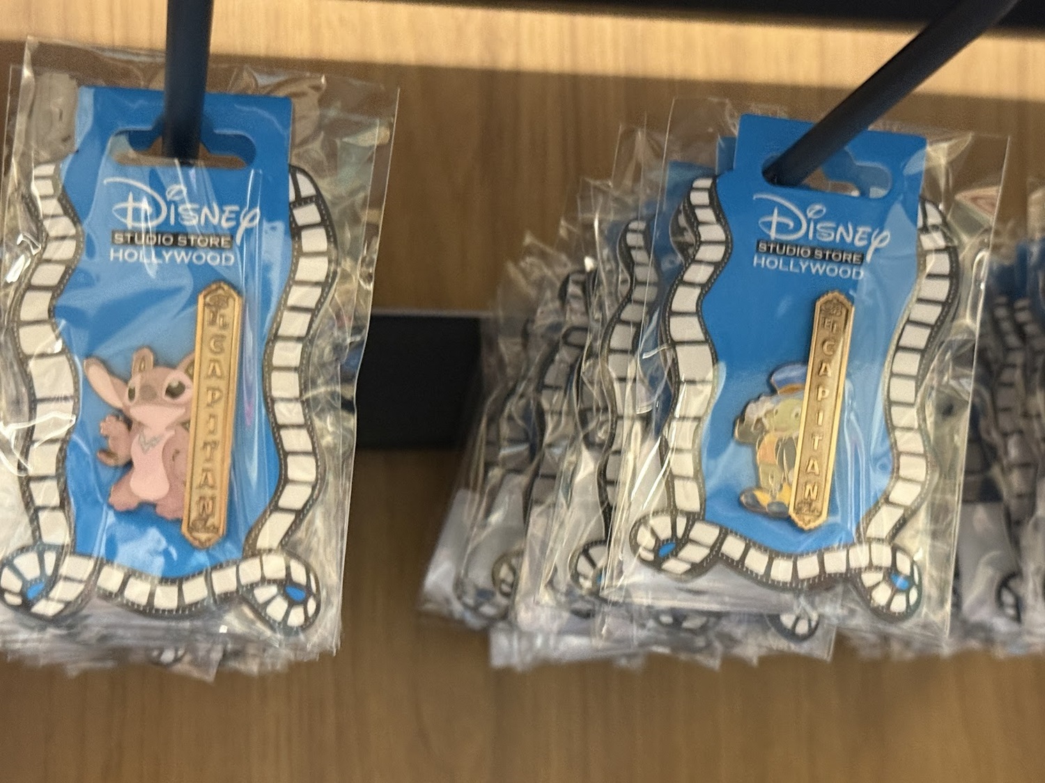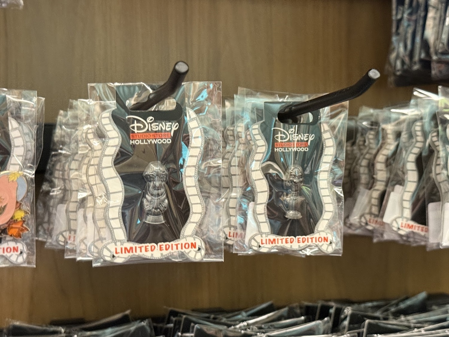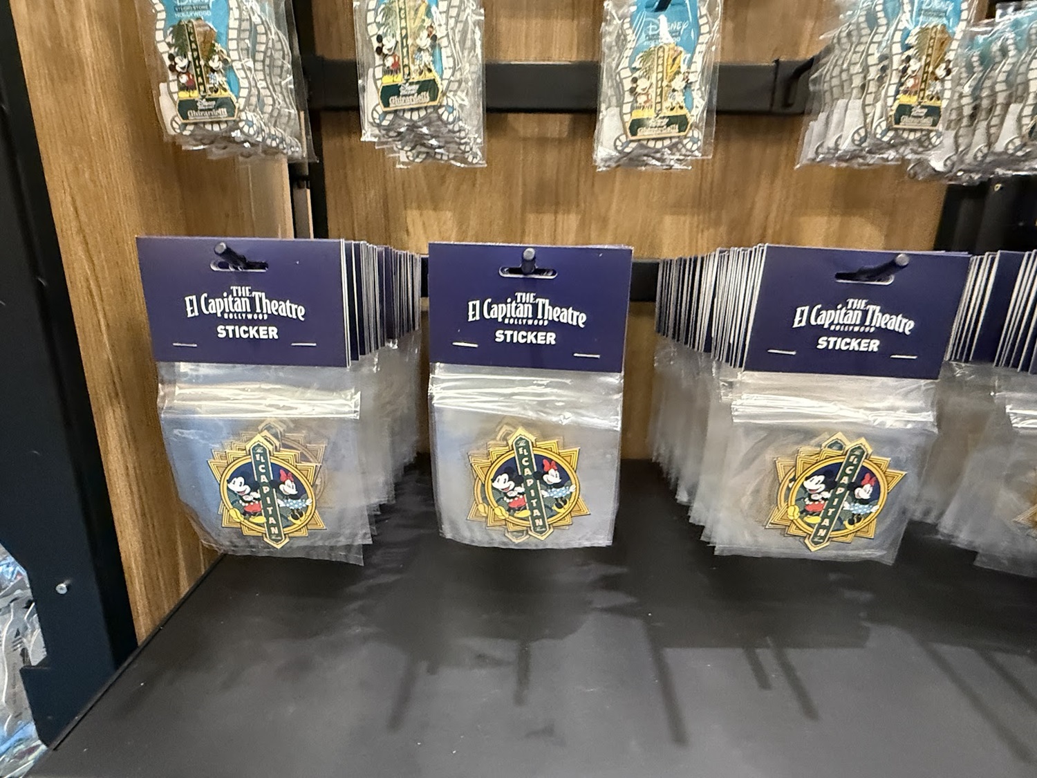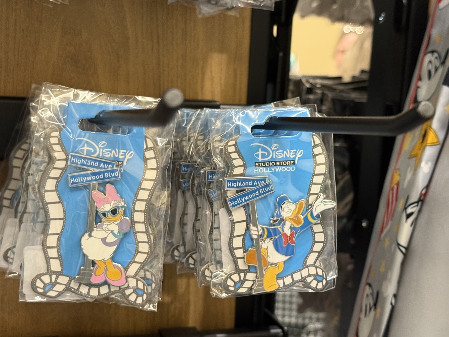 The real draw though are the open-edition pins that can be found in this location. Each features a classic or favorite character sitting in a theater seat. Others feature characters alongside the famous El Capitan Theatre marquee. As a reminder of where these came from, a number of the pins also feature characters at the road signs marking Hollywood and Highland.