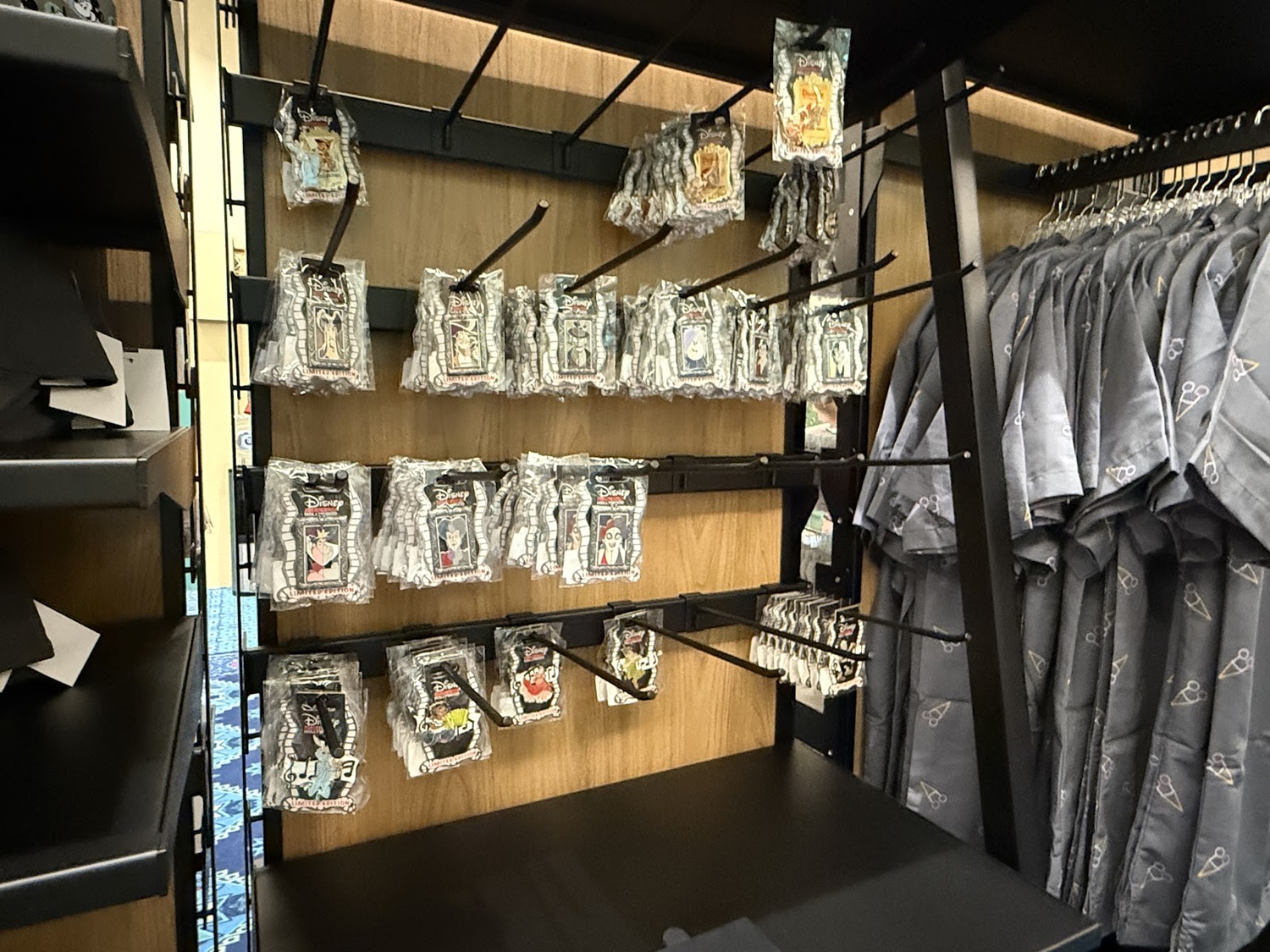 Fun patterns on apparel and accessories can be found in this smaller location, all featuring favorite characters.