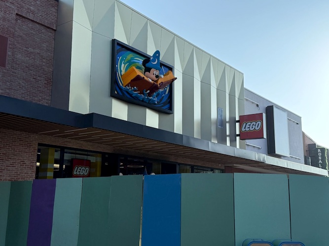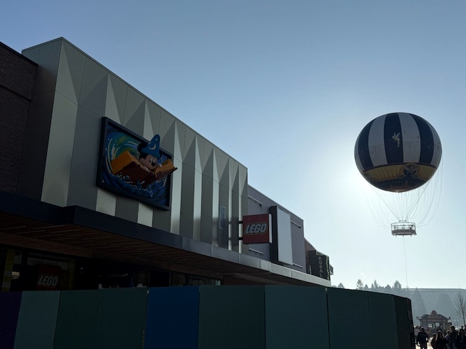 Similar to LEGO stores at other Disney locations, the new Disney Village location includes its own LEGO sculpture of a classic Disney moment. For Paris, this moment from The Sorcerer’s Apprentice is framed above the store’s entrance.