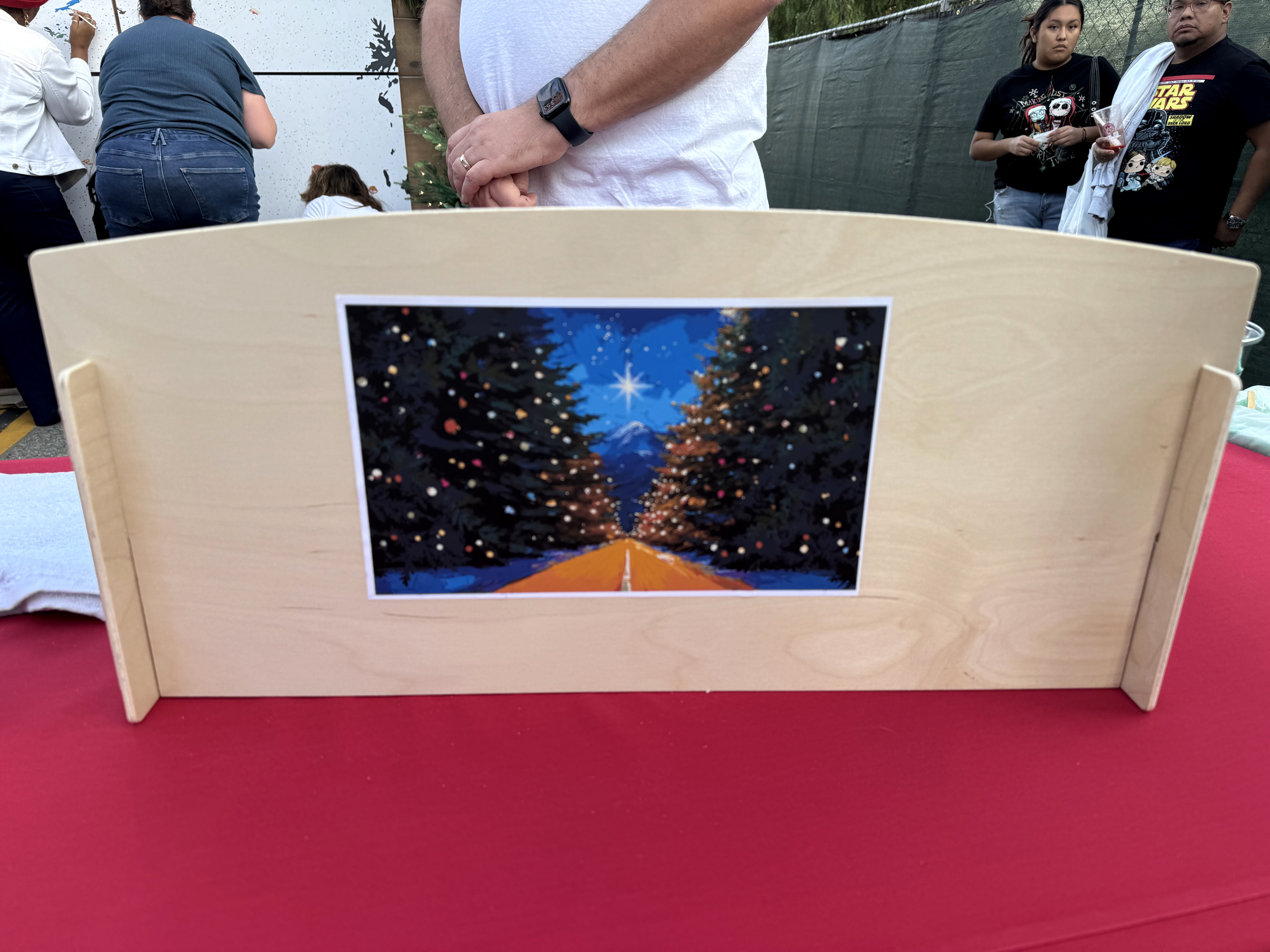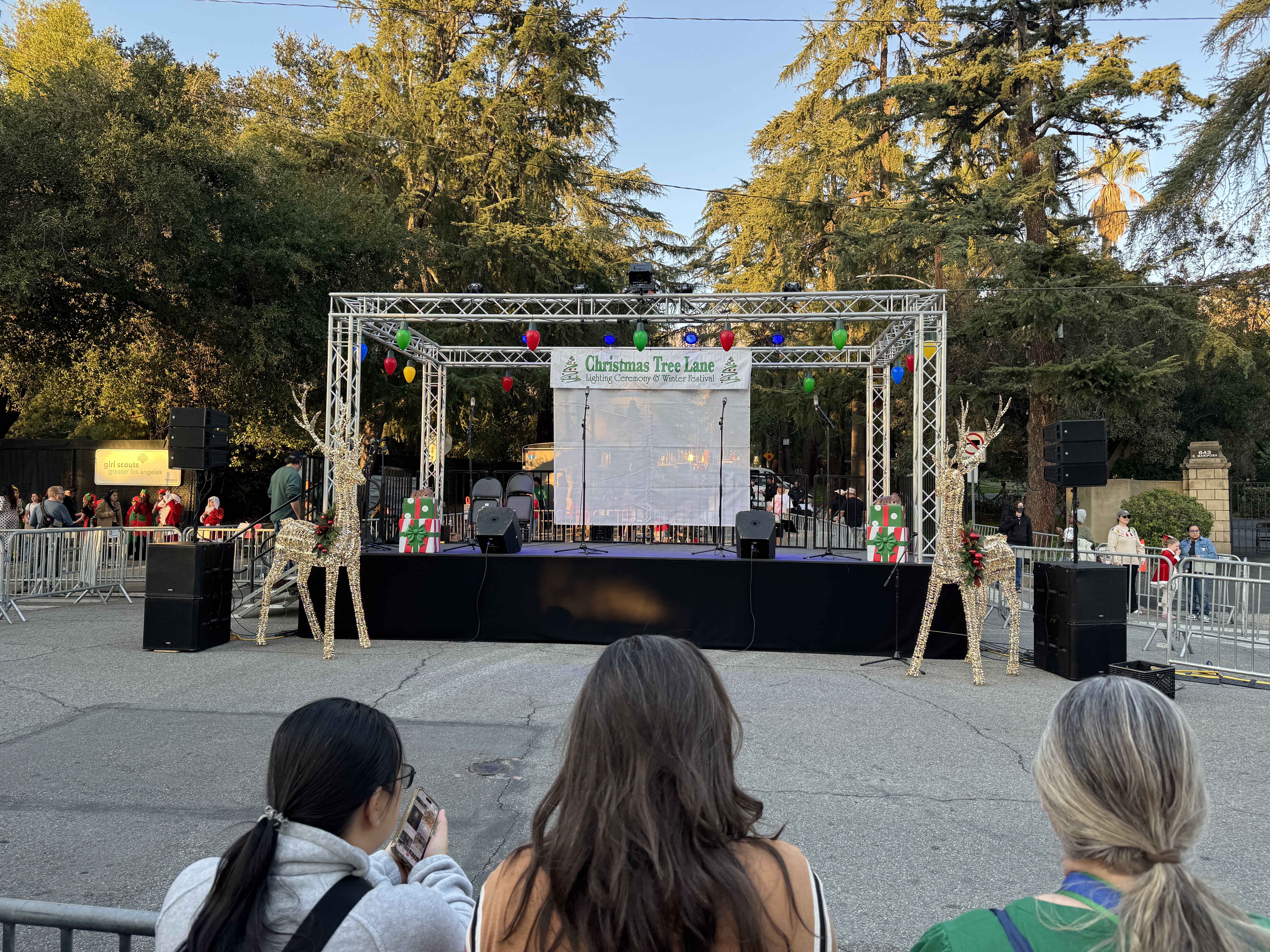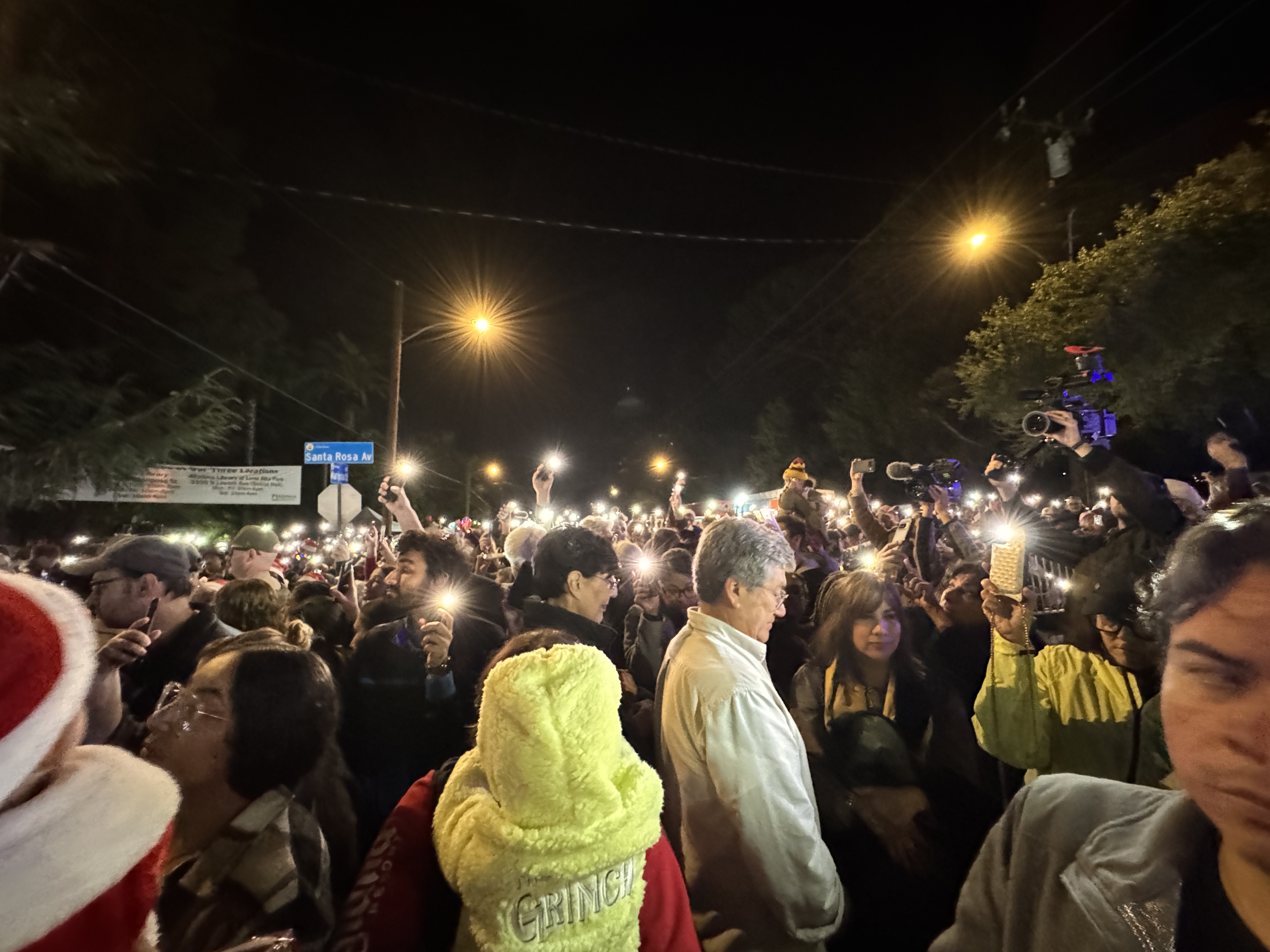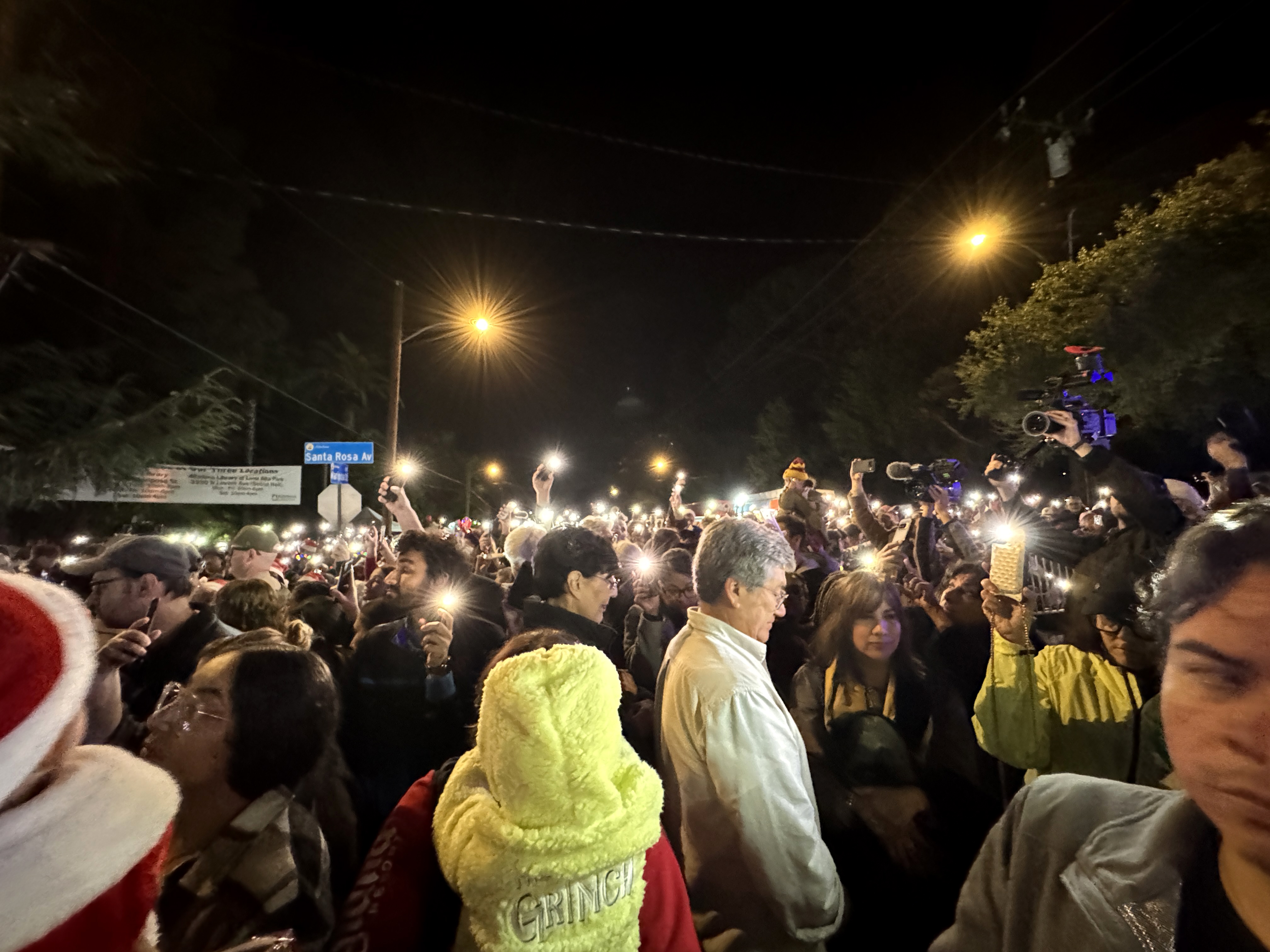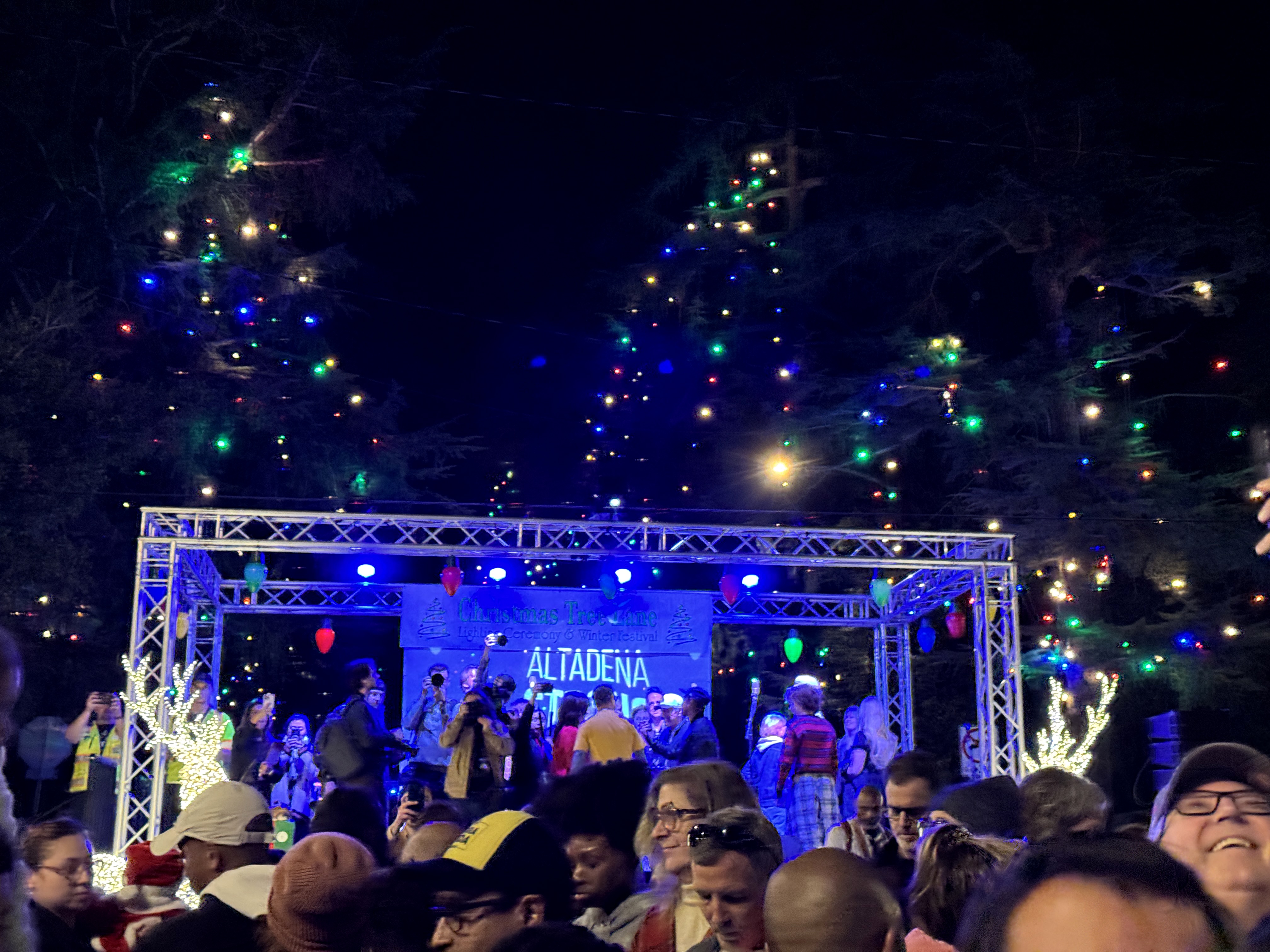But outside of that experience, the main event of this evening's festivities was the Christmas Tree Lane Lighting Ceremony, a tradition in Altadena dating back more than a hundred years. This year's ceremony was hosted by actor Edward James Olmos from Battlestar Galactica, Selena, and Stand and Deliver.