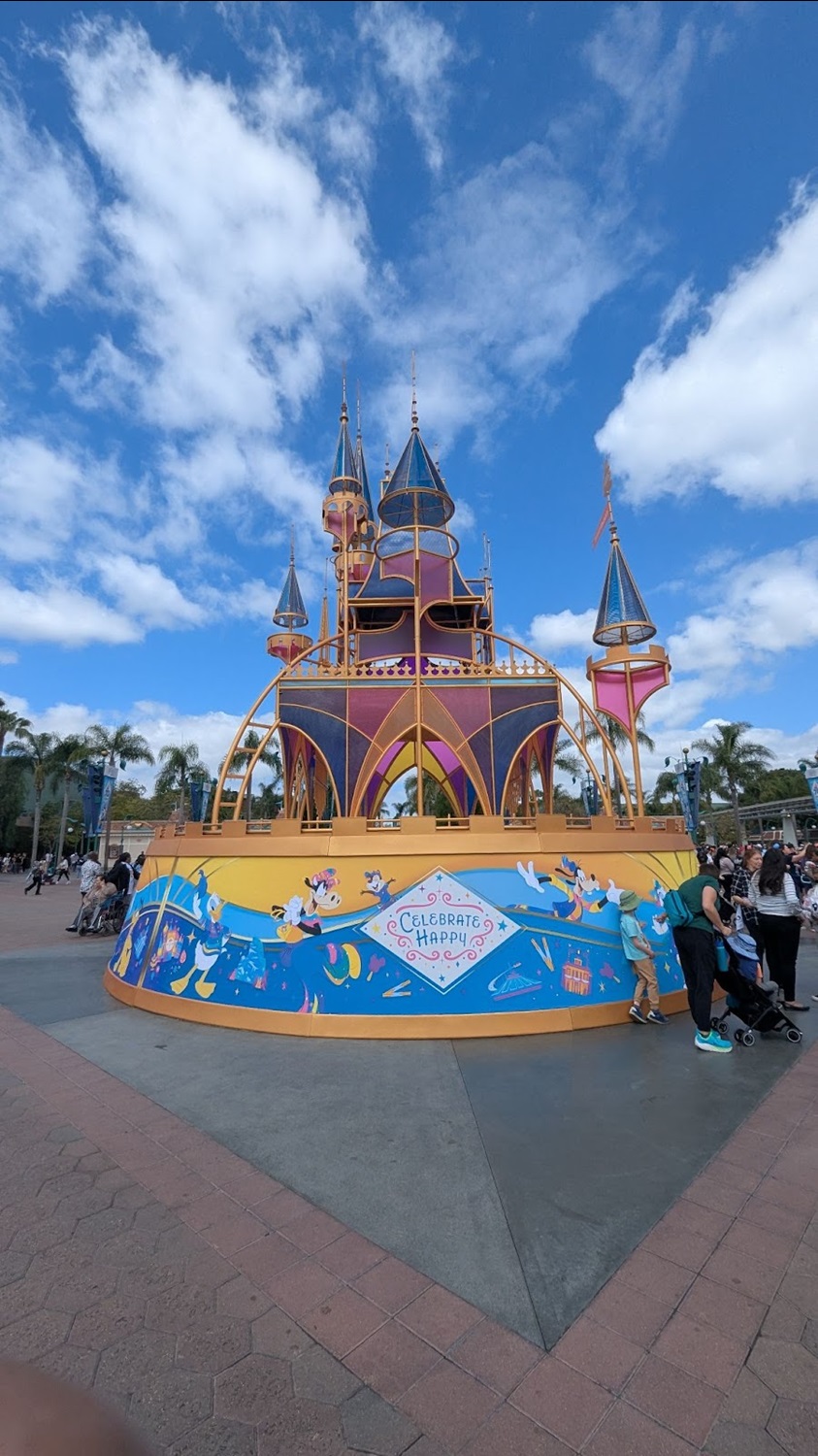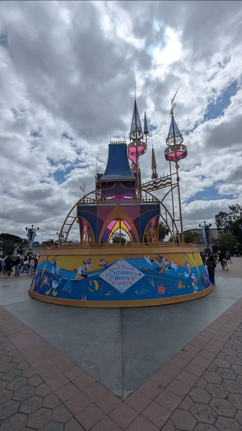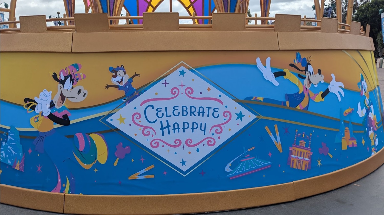 Around the base of the sculpture, you’ll find more 70th fun with all the characters and attraction art, plus the mantra for the celebration - “Celebrate Happy"