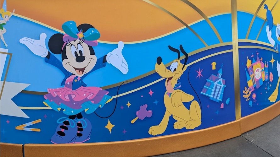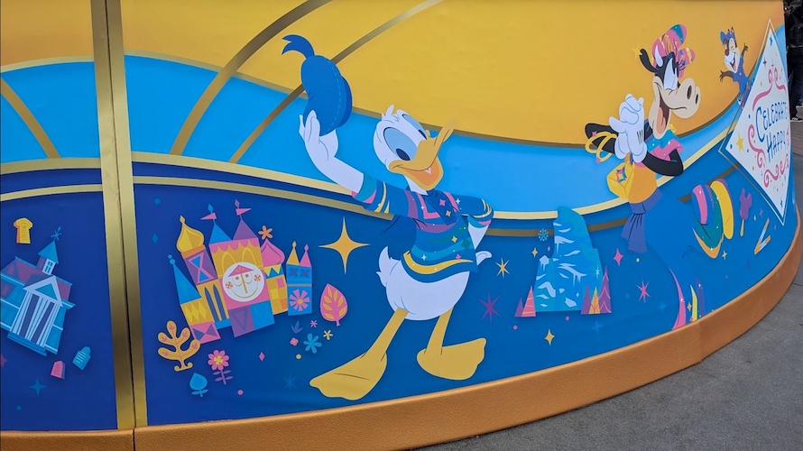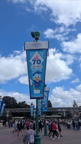 Throughout the Esplanade, banners which once featured attractions found at both Disneyland and Disney California Adventure, have been replaced with the anniversary logo and the characters in their anniversary attire. This is to be expected though, as nearly every celebration or season at the event features these banners changing in some way.