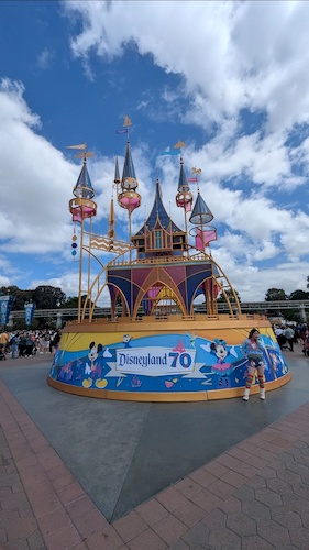 Guests entering the Esplanade of the Disneyland Resort will see a brand new sculpture in the space between Disneyland Park and Disney California Adventure. The sculpture, part of the Disneyland Resort 70th Anniversary Celebration, has an artistic interpretation of Sleeping Beauty Castle adorned with attraction icons and our favorite characters.