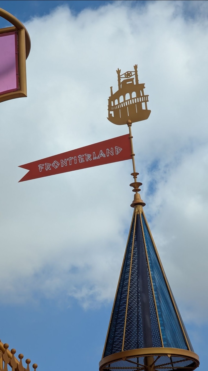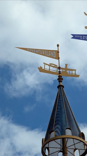 Another fun thing to note, each of the spires on the castle sculpture features a flag with a different opening day land, along with a cutout featuring something indicative of that land. For example, Fantasyland has a carousel horse, and Adventureland has a Jungle Cruise boat, etc. Some will also point out that three of the five symbols are opening day attractions as well - the carousel, Jungle Cruise, and the Mark Twain. However, Tomorrowland’s flag features Space Mountain (1977) and Main Street USA features the Partners statue, which arrived at Disneyland in 1993.