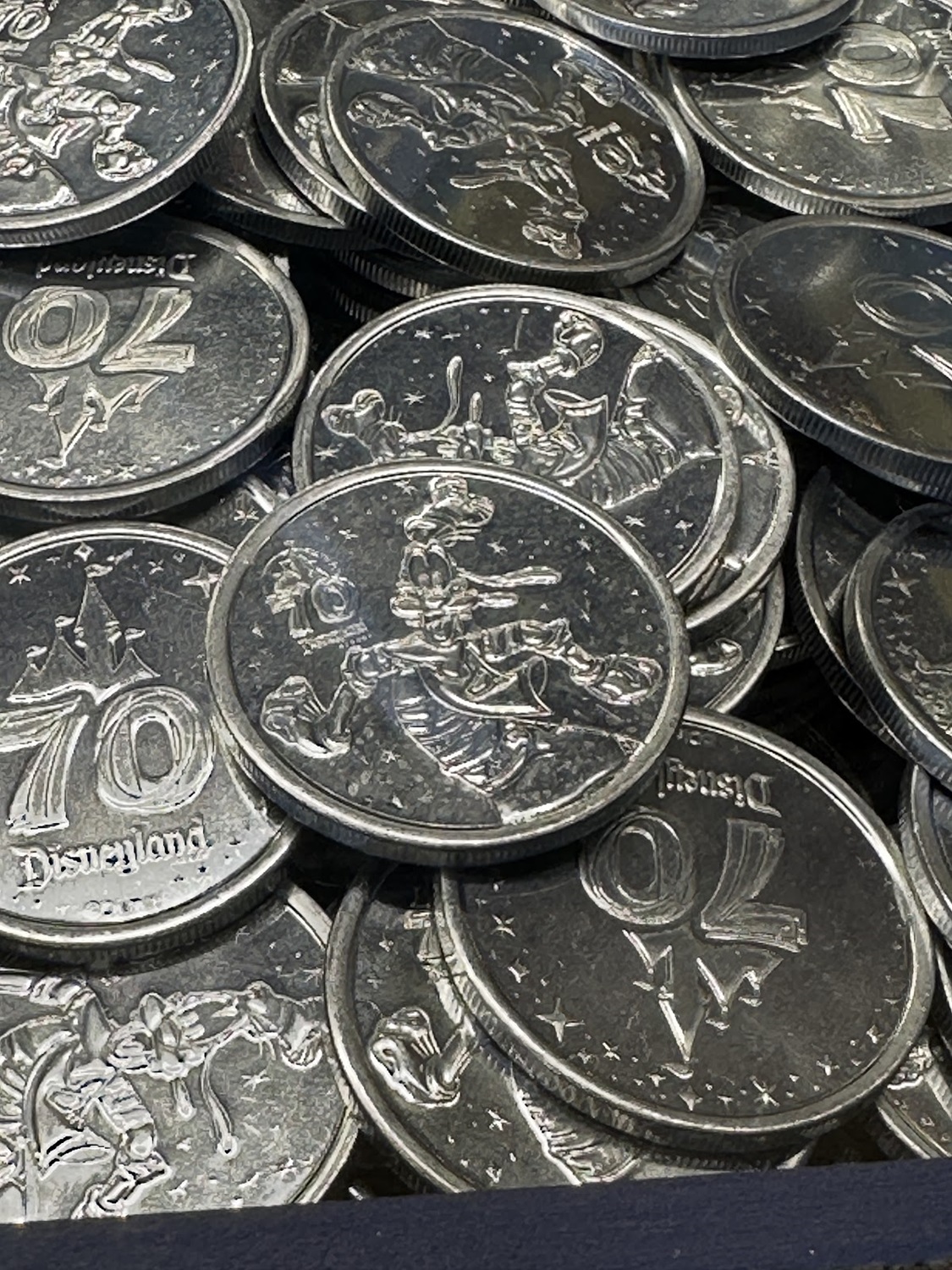 Some fans might even see the anniversary medallions and remember a simpler time, half the lifespan of Disneyland ago– the 35 Years of Magic anniversary celebration. Souvenir coins (though plastic) were tossed during the Party Gras parade, marking the anniversary, for the low low price of free. These new medallions are a fun way of keeping that tradition alive at the park.