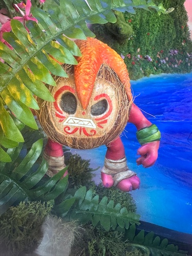 - Throughout the display, the coconut-shaped Kakamora can be seen popping in and out of frame.