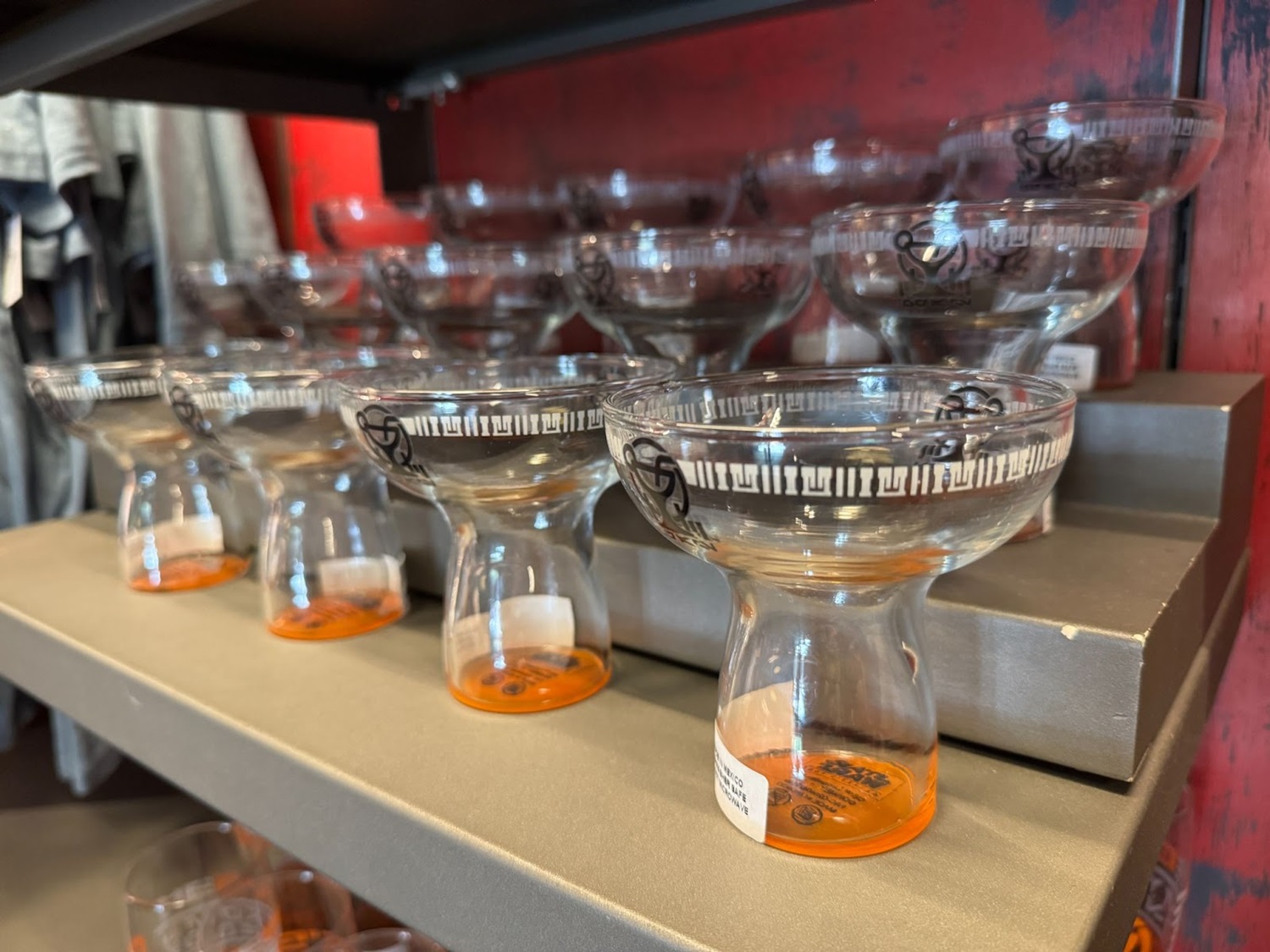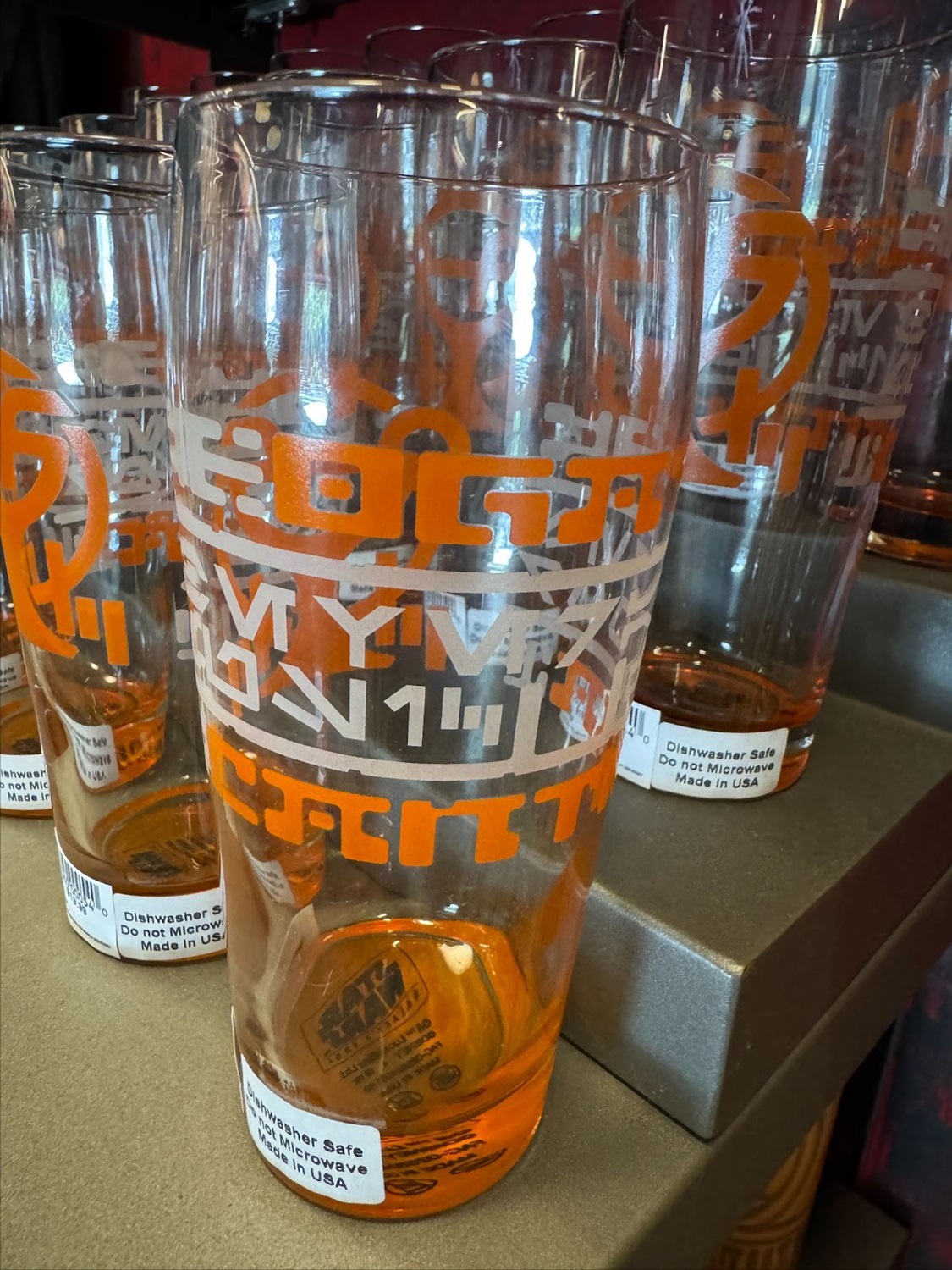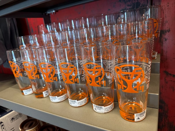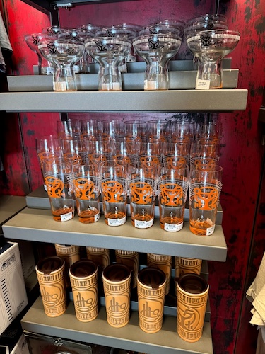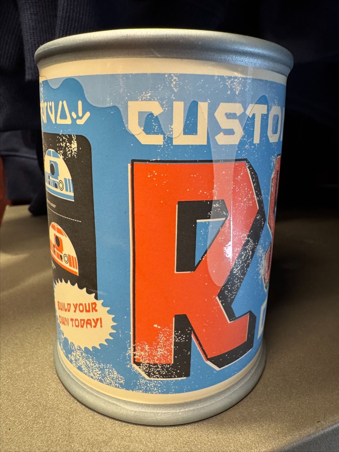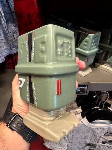 The first thing that jumped out at me were two new pieces of glassware featuring the Oga’s Cantina logo and some Aurebesh writing. These are not droid-related in any way, so I have to wonder if they were intended to be made available in Oga’s itself. The smaller glass ($19.99) has the Oga’s logo and says– unsurprisingly– “Oga’s" in Aurebesh. The Aurebesh on the larger glass (also $19.99) reads “Beverages / Music / Food."