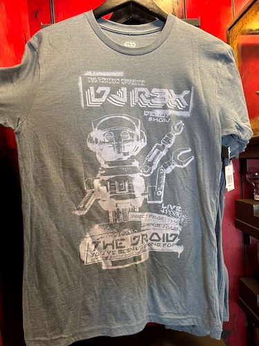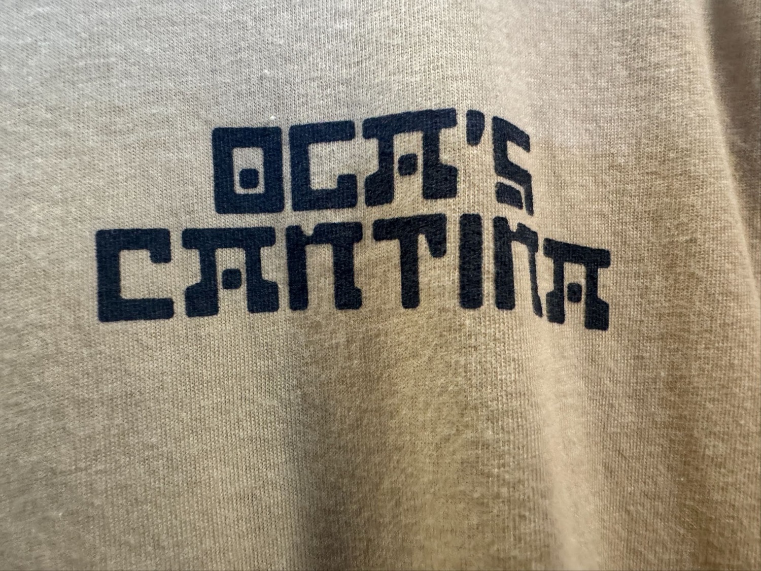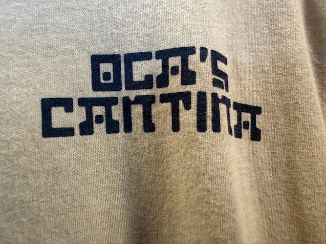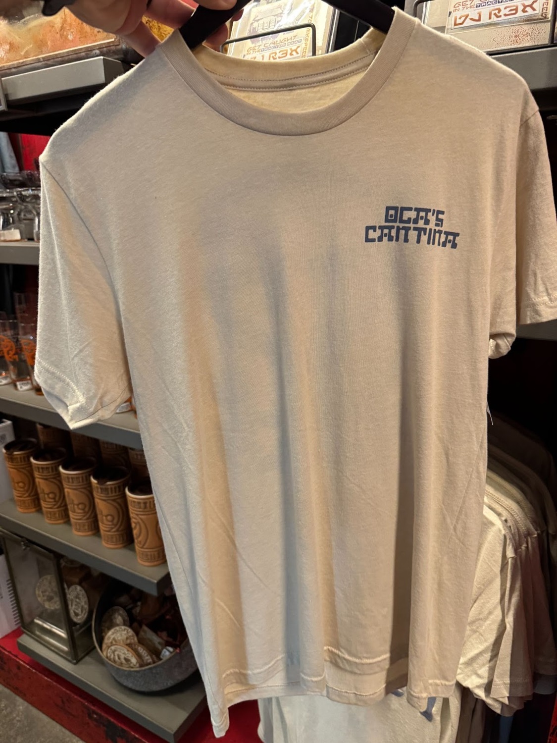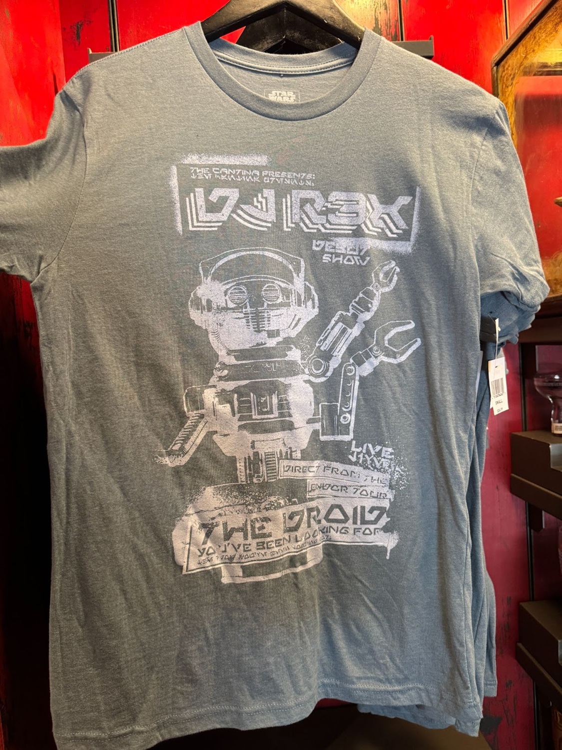 But wait, there are two other ways to proclaim your love for Oga’s Cantina, one of which does actually feature a droid. The DJ Rex t-shirt ($34.99) has a lot of text on it, with one phrase declaring the former Star Tours pilot “the droid you’ve been looking for." The other shirt (also $34.99) has a large Oga’s logo on the back, while on the left breast it reads “Oga’s Cantina" in stylized English.