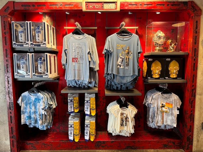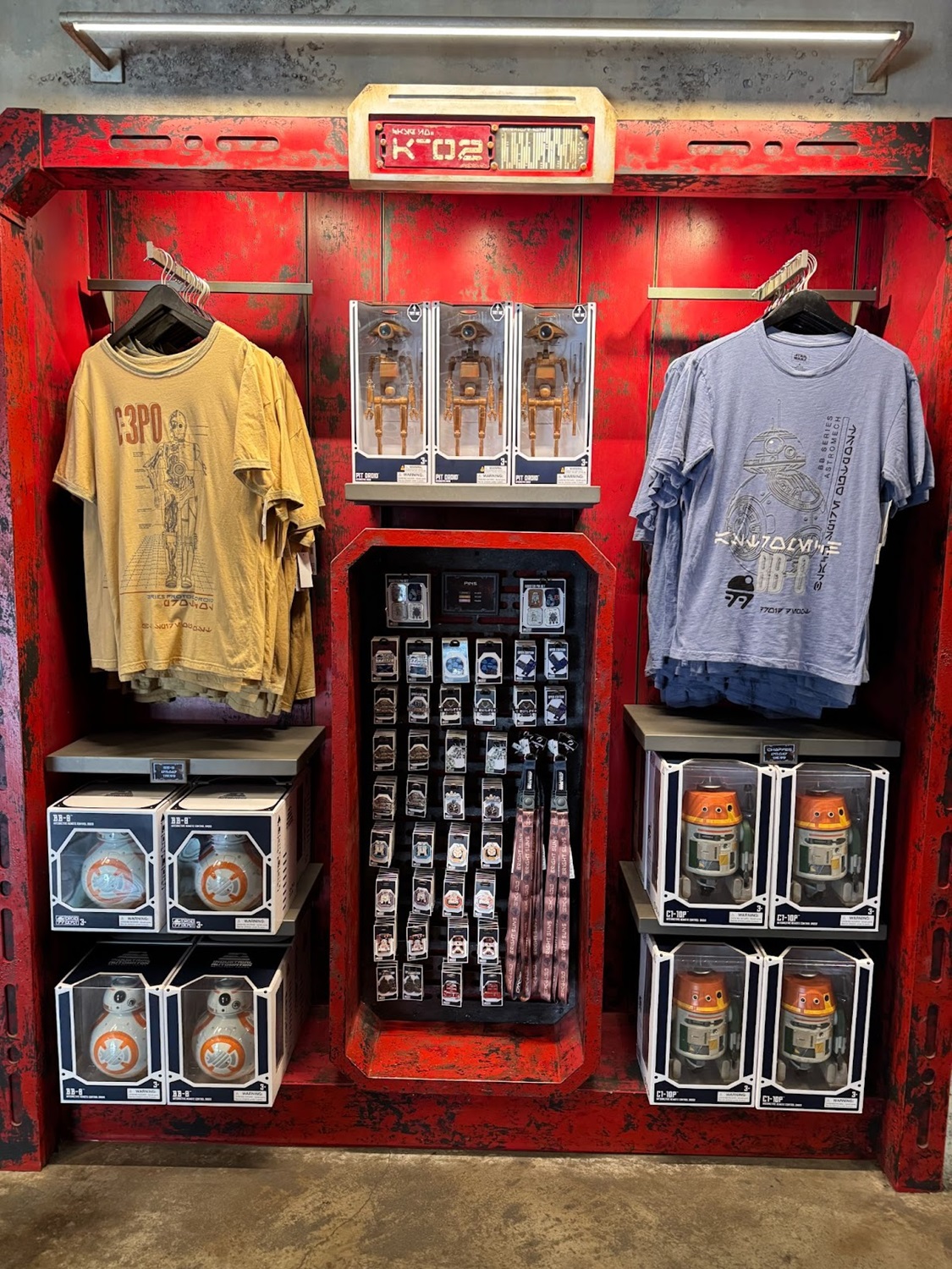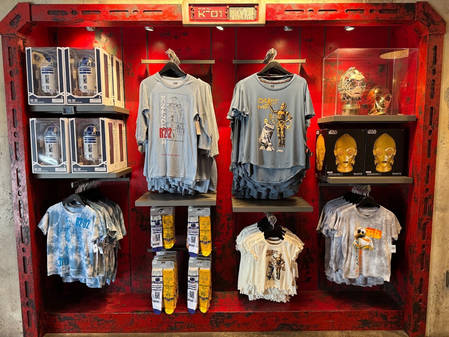 During my visit to Disneyland yesterday, I stopped by the Droid Depot gift shop in Star Wars: Galaxy’s Edge and found a lot of fresh merchandise and apparel that has been added to the store recently. Some of it may be newer than others, but below you’ll find my photo report of what’s available right now from Droid Depot on Batuu.