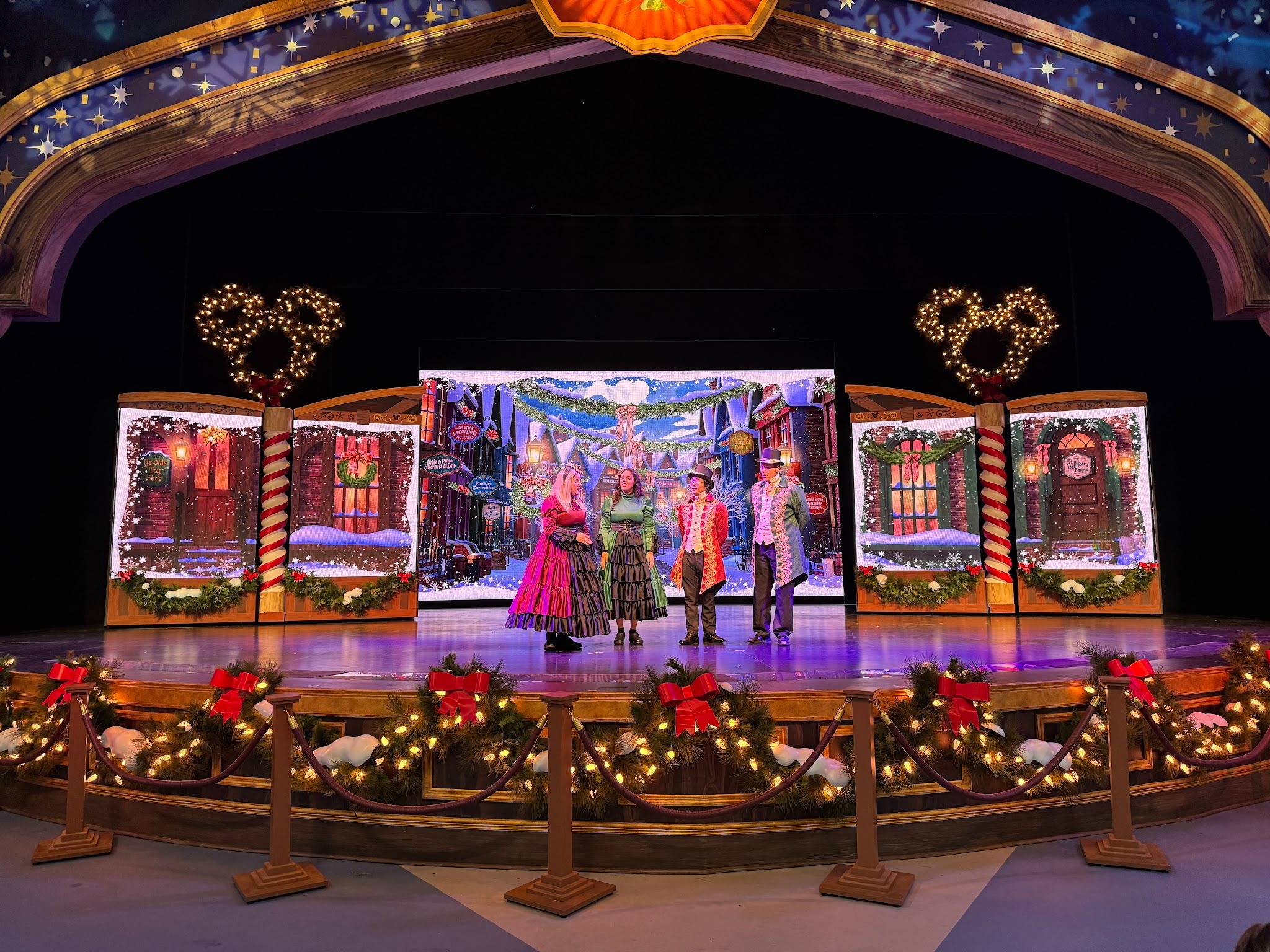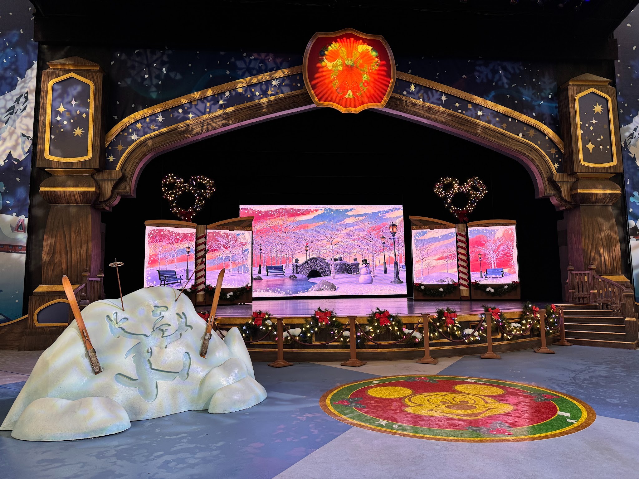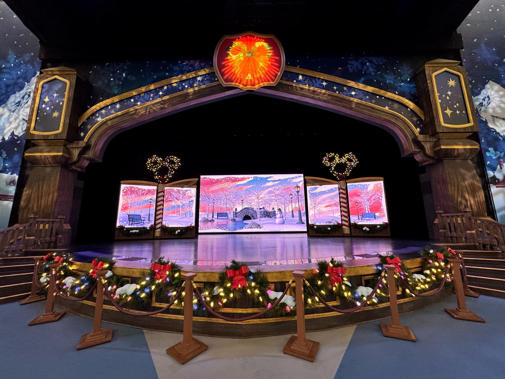 The stage itself features plenty of holiday decor - even if it is still blatantly the stage for “Mickey and the Magical Map” with a thin veil if you know what existed there prior.